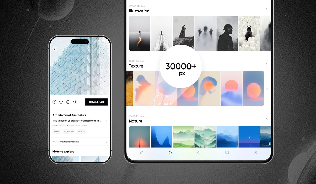 Wallpapers up to 30,000 pixels—crisp on any modern display.