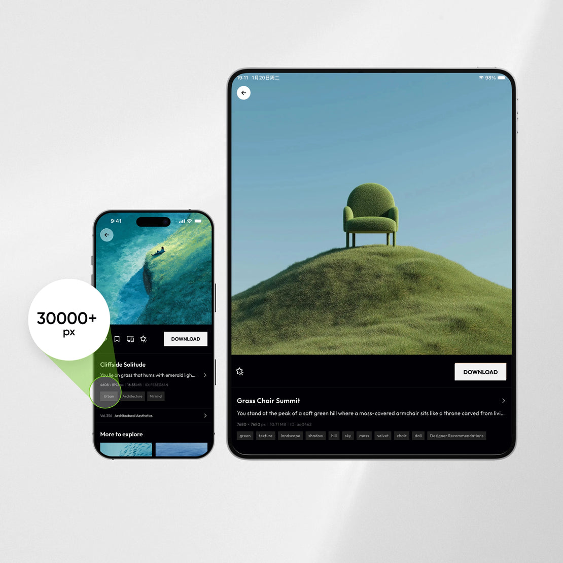 Social platforms only provide compressed previews with low resolution, blurred dark areas, and lost texture. The App gives you high-resolution, watermark-free originals, perfectly optimized for your screen.