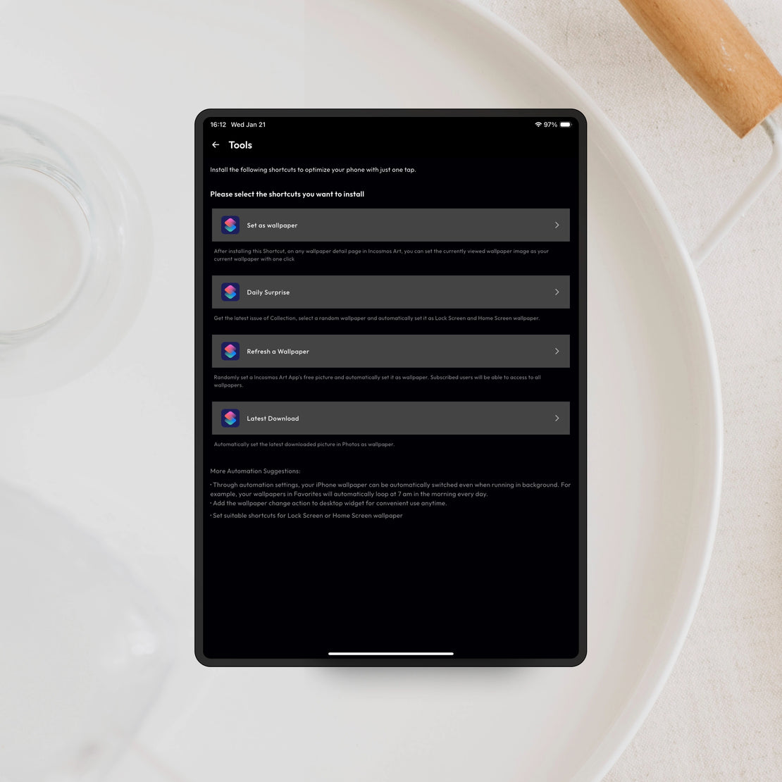 Automatically applies a fresh wallpaper from today’s collection.
