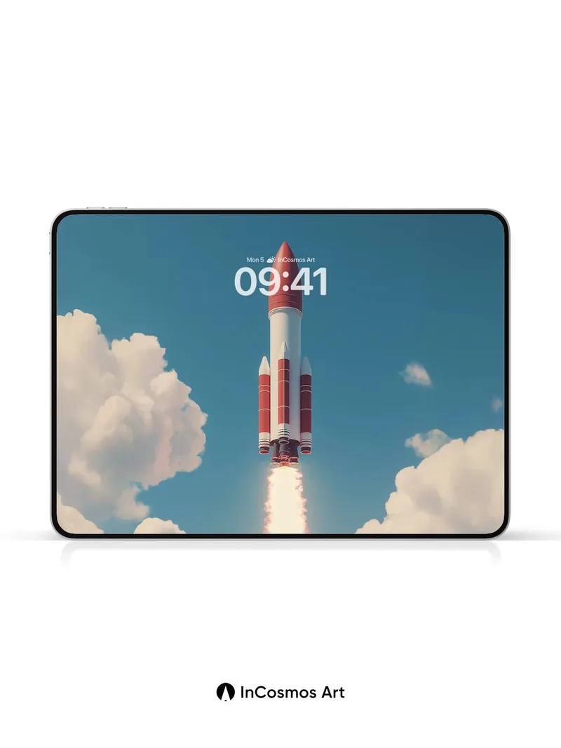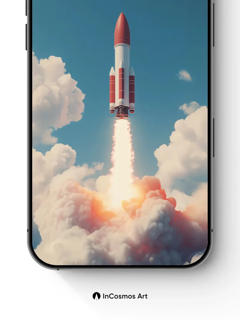 Ascendant Flame Wallpaper with Cloud-Embraced Launch