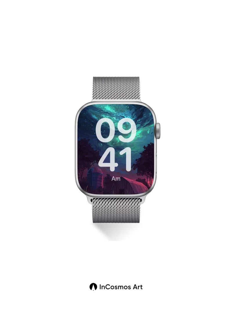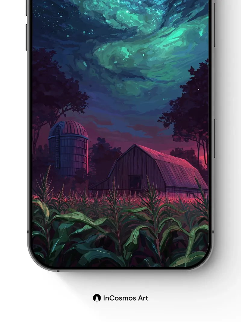 Aurora Hush Wallpaper with Midnight Farm