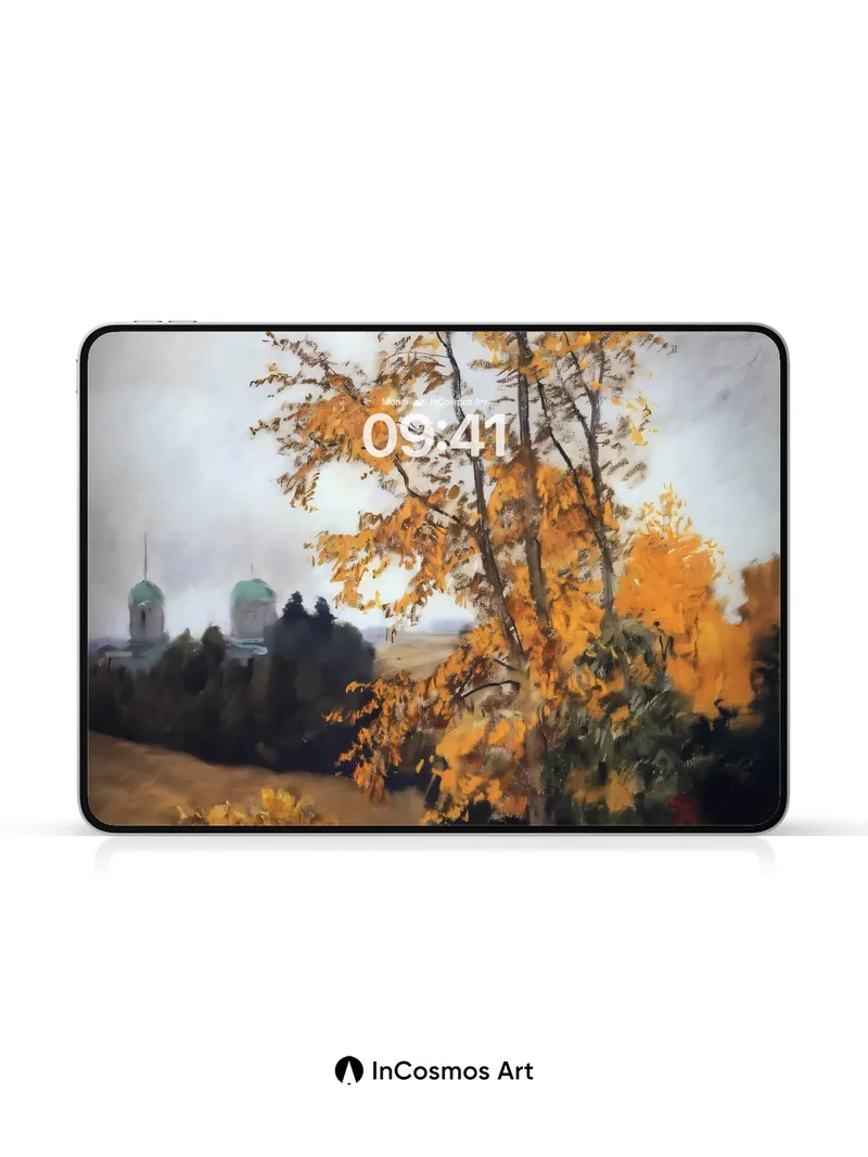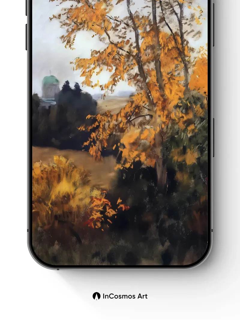 Debug product.metafields.custom.desc: Did you know the golden hues of autumn leaves contain pigments called carotenoids, which become visible only when chlorophyll fades? Light crawls through each trembling leaf like a whispered secret, casting amber shadows across the quiet hillside. In the distance, twin domed spires rise from a forested veil, their green roofs softened by mist as if dreaming of another century.