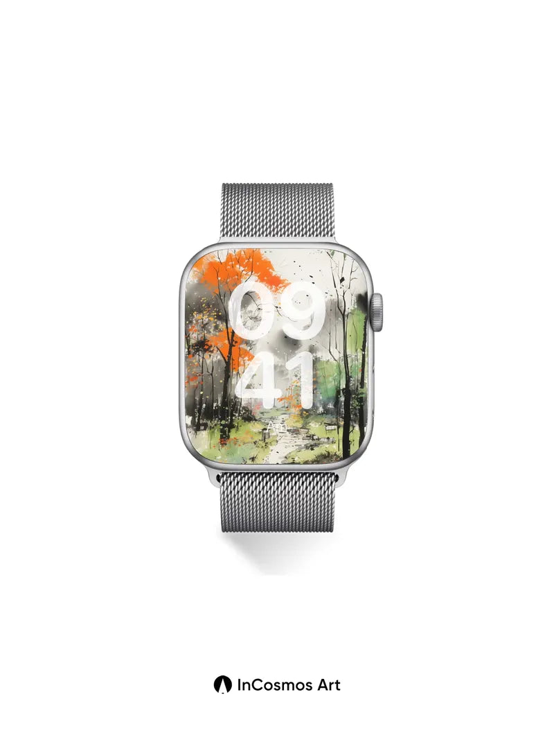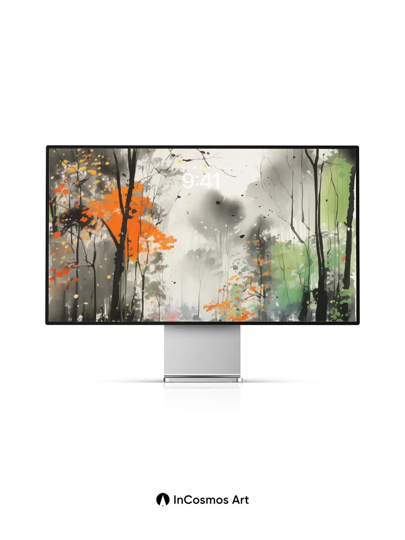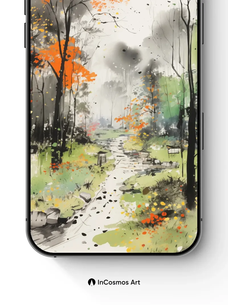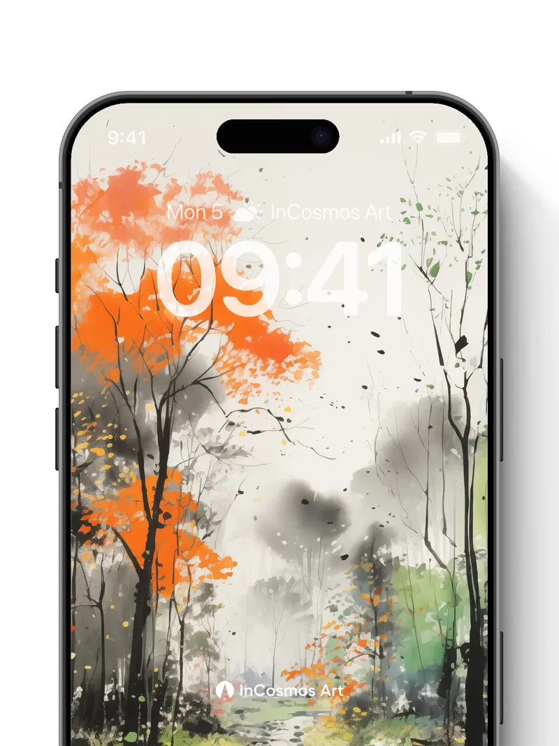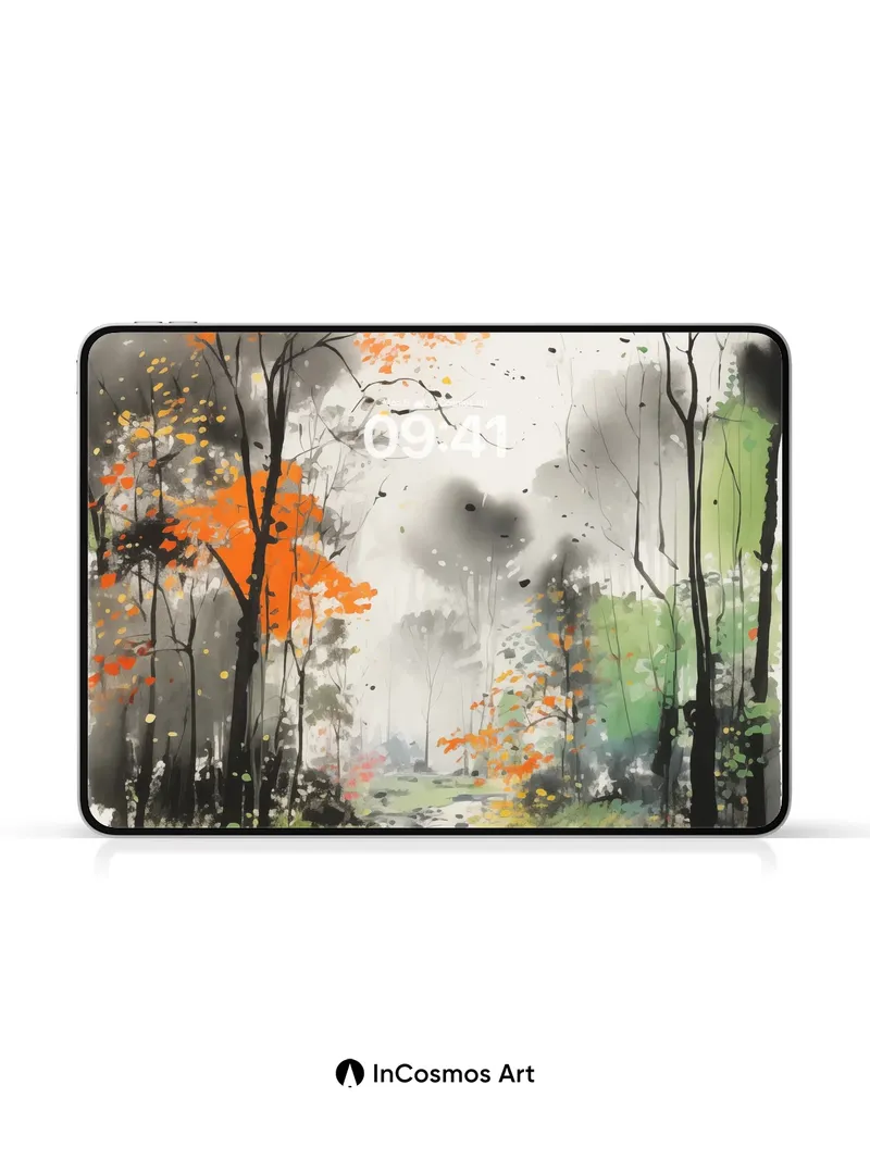 Autumn Hush Wallpaper with Ink-Blot Trees