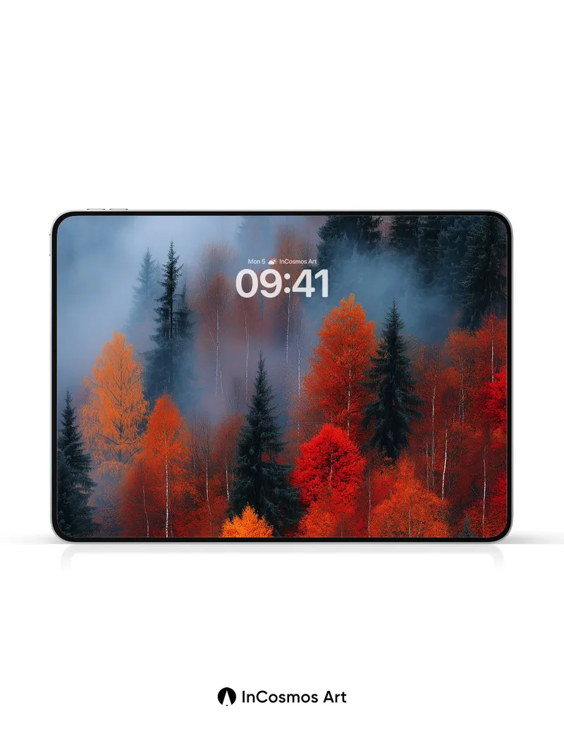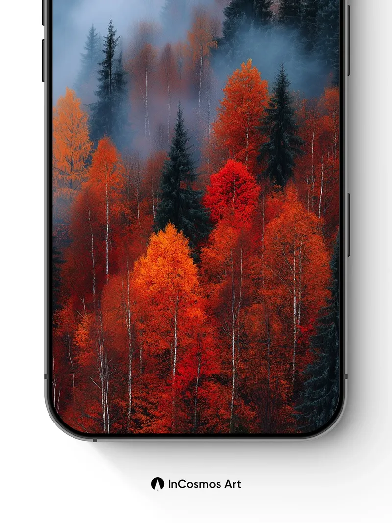 Autumn Hush Wallpaper with Mist-Cloaked Pines