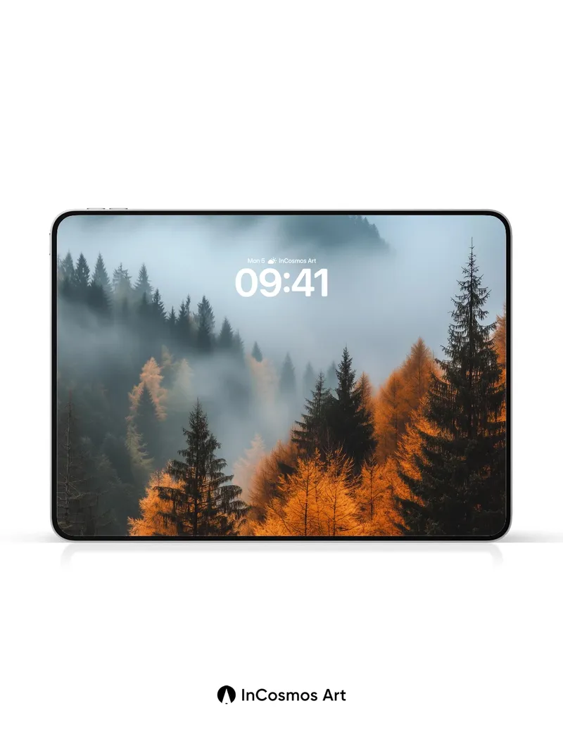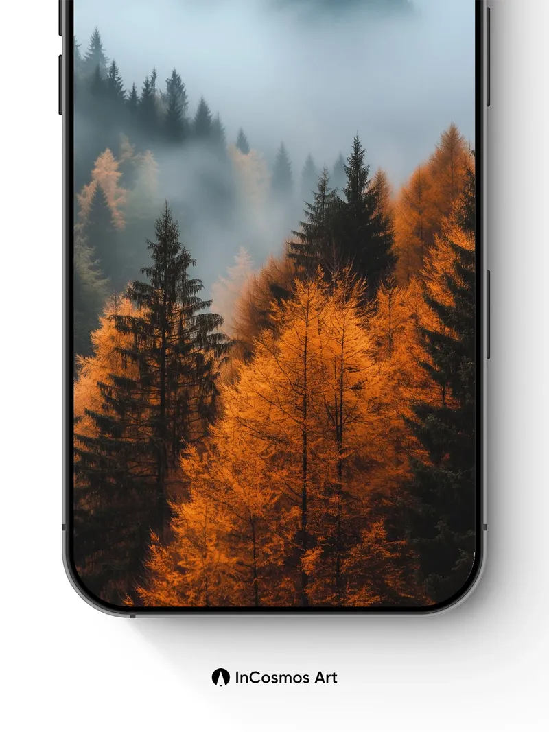 Autumn Hush Wallpaper with Mist-Weaved Pines