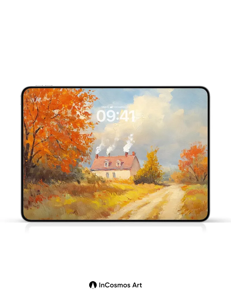 Autumn Hush Wallpaper with Smoke-Whispered Chimneys