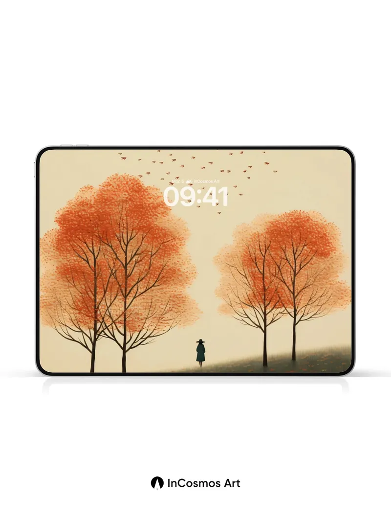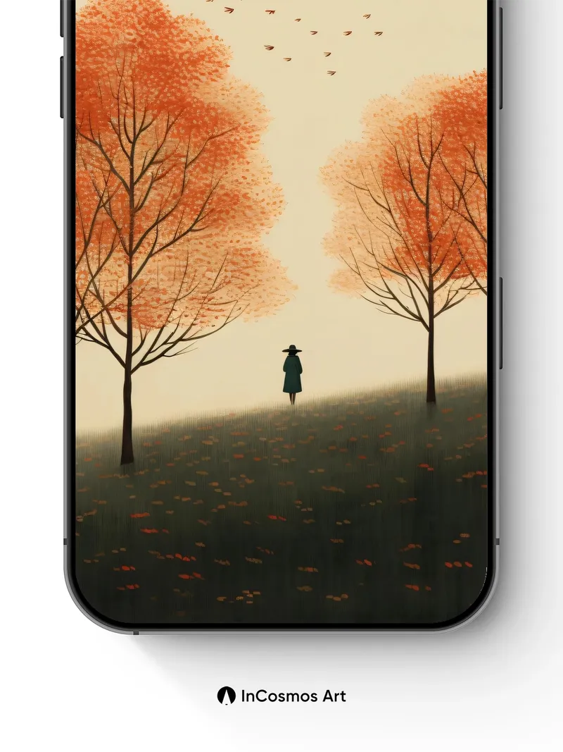 Autumn Hush Wallpaper with Solitary Walker