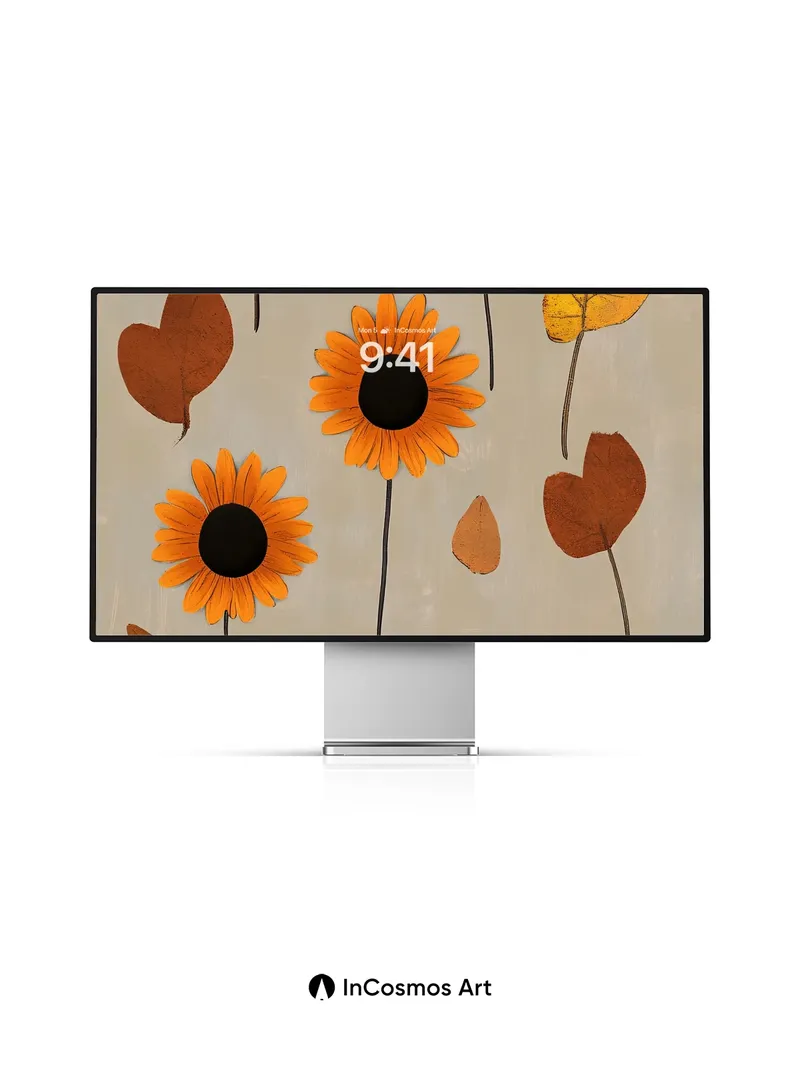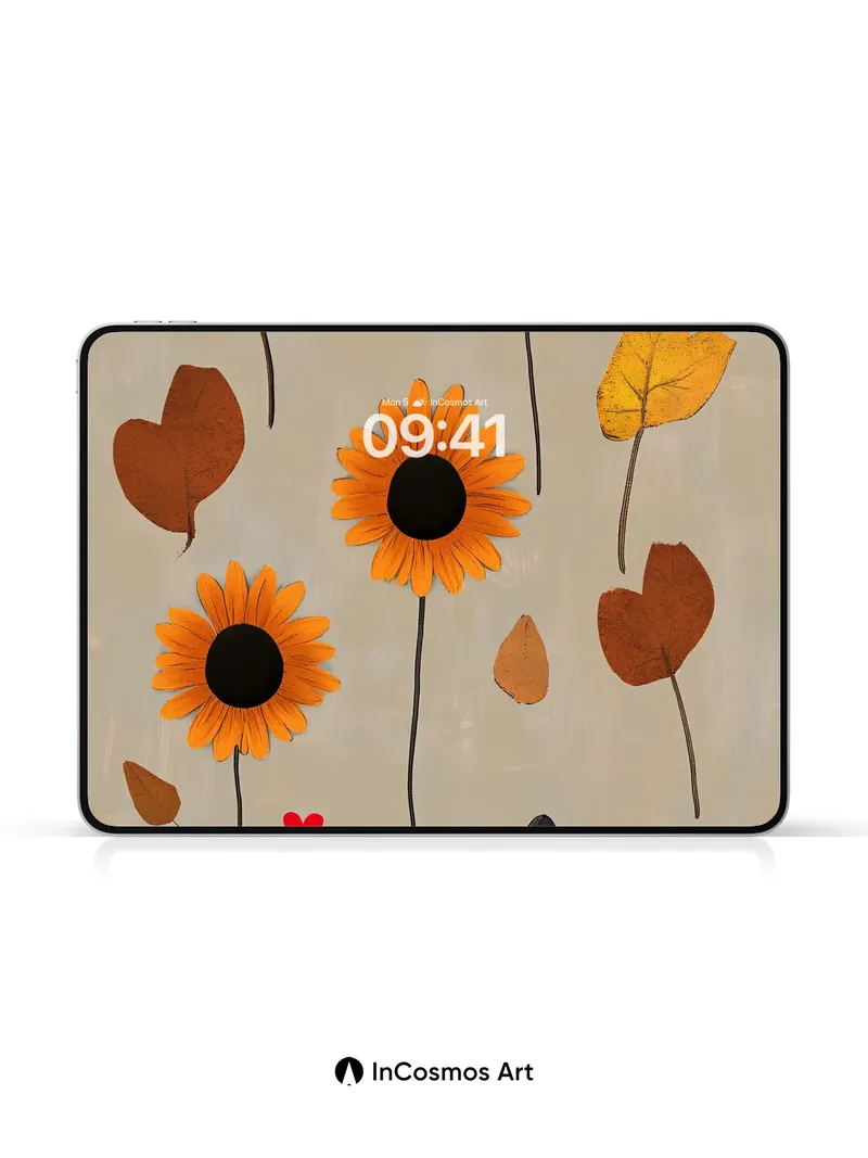 Autumn Whimsy Wallpaper with Floating Sunflowers