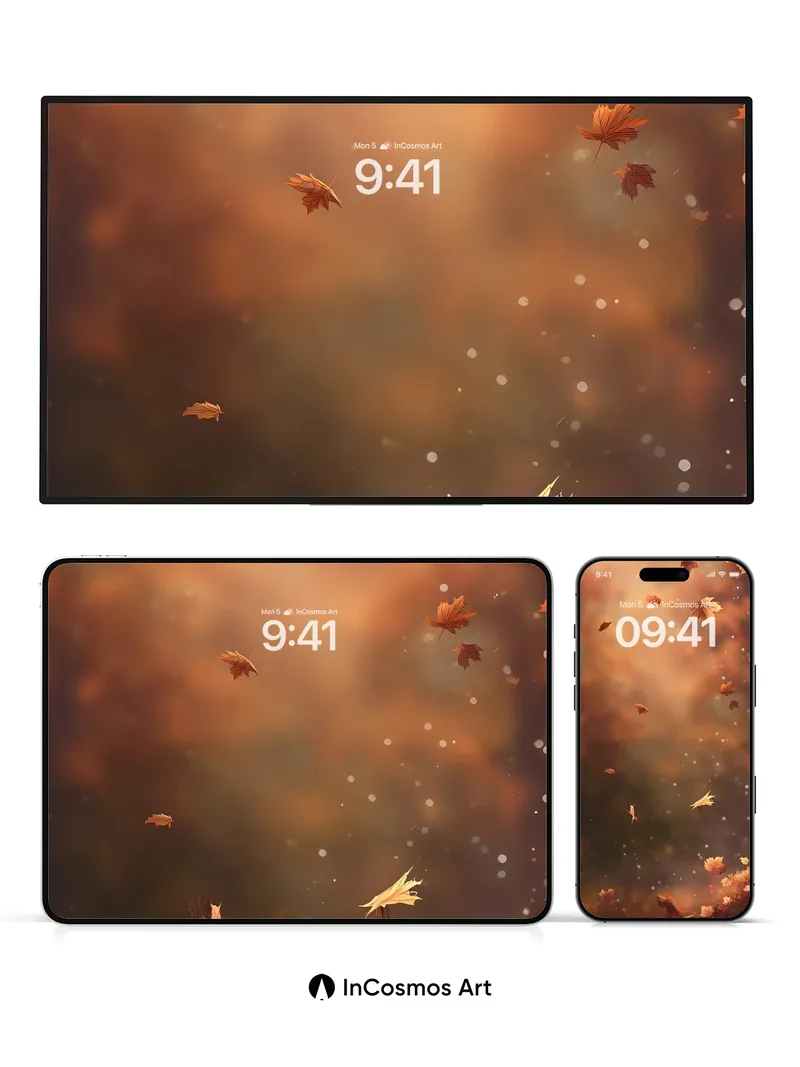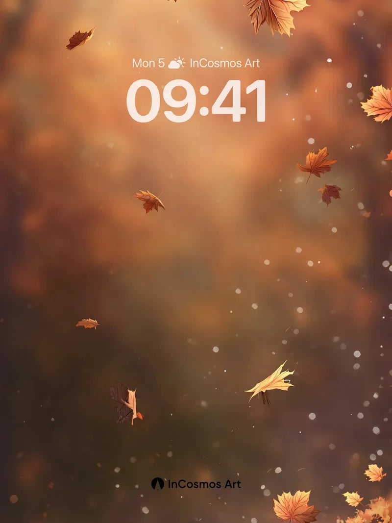 Autumn Whispers Wallpaper with Floating Leaves