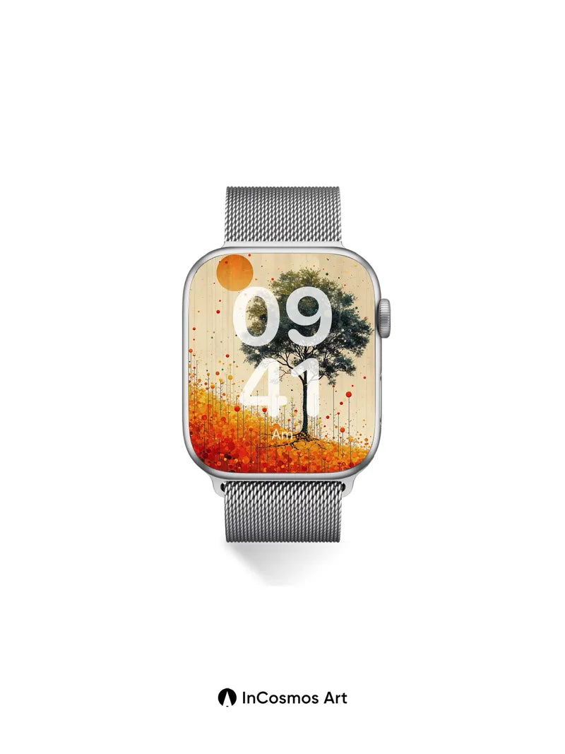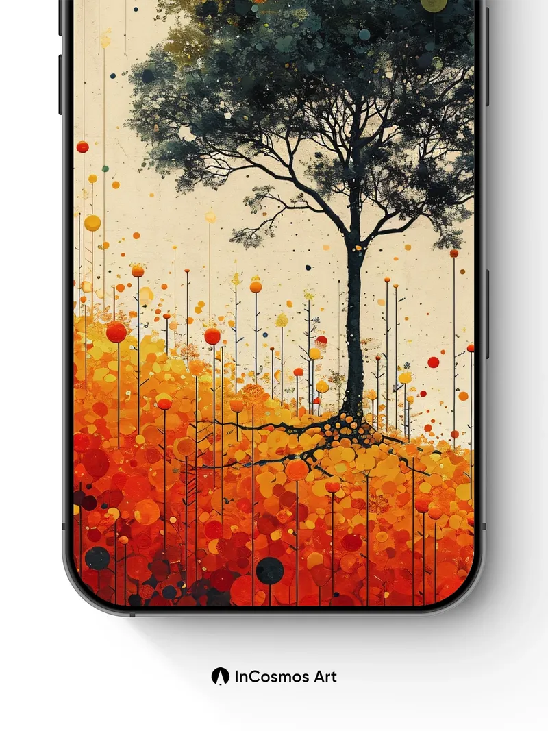 Debug product.metafields.custom.desc: Did you know the ancient Greeks believed trees absorbed the soul of the earth? Here, a lone oak stands rooted in a field of pulsing orbs, its silhouette framed by a golden sun and falling dots like stardust. The ground glows with molten hues—amber, rust, and ember—as if light itself is breathing through the soil. You’re not just looking at a scene; you’re stepping into a world where nature and cosmos hum in harmony.