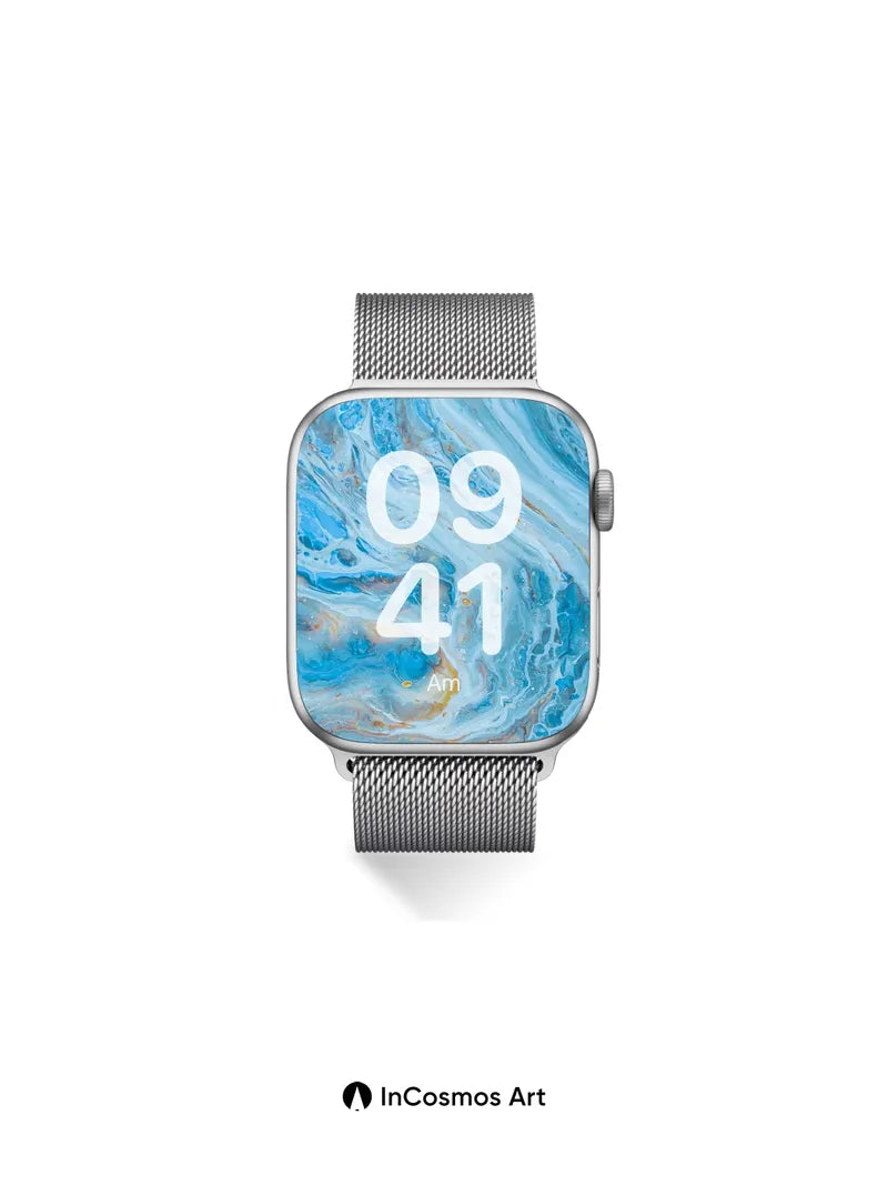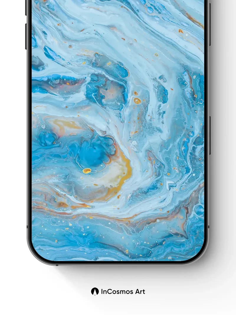 Debug og_description: Did you know that oceanic currents can shape mineral deposits into swirling patterns resembling liquid marble? Here, cerulean and silver streams coil like tides caught in a moment of breath, their edges softened by the faintest gold flecks—like sunlight trapped beneath ice. You feel the coolness of deep water against your skin as the colors pulse with quiet motion, inviting you to dive into a world where fluid meets stone.