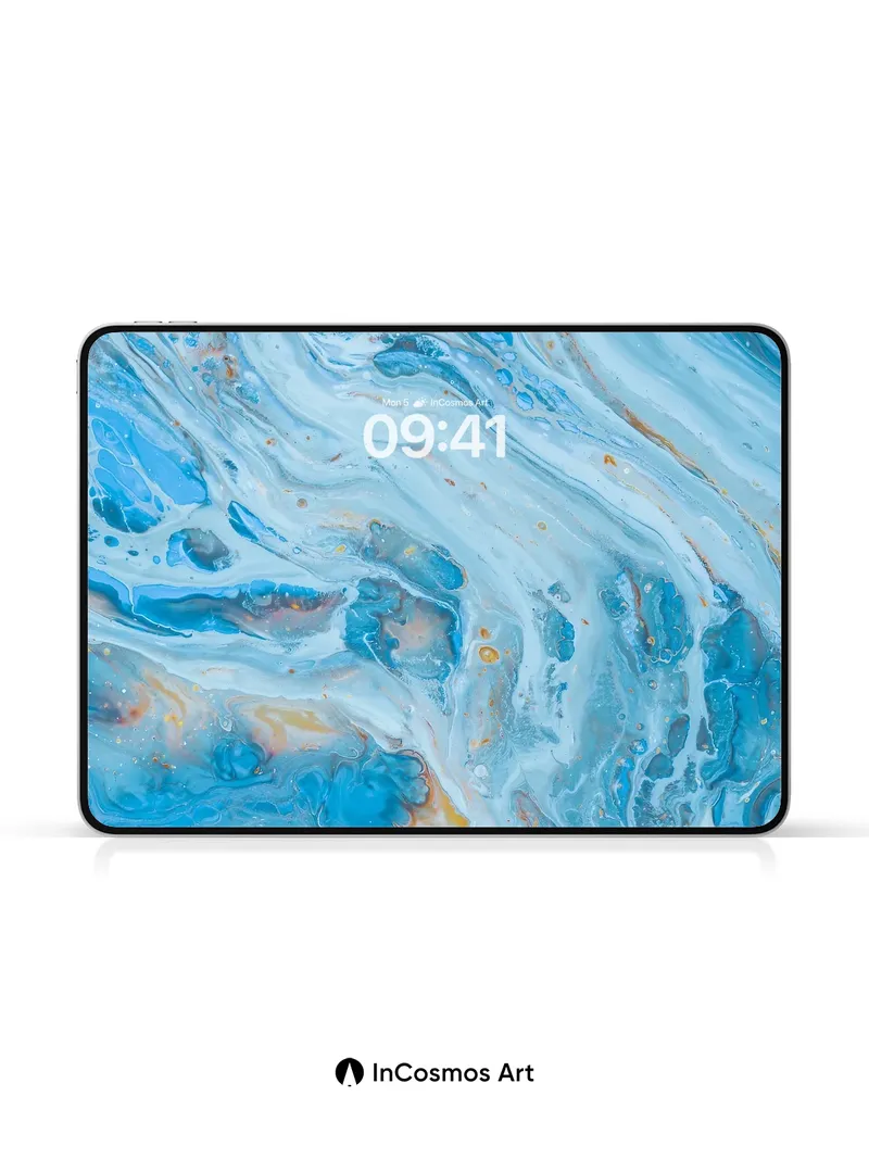 Debug page_description: Did you know that oceanic currents can shape mineral deposits into swirling patterns resembling liquid marble? Here, cerulean and silver streams coil like tides caught in a moment of breath, their edges softened by the faintest gold flecks—like sunlight trapped beneath ice. You feel the coolness of deep water against your skin as the colors pulse with quiet motion, inviting you to dive into a world where fluid meets stone. Share this with your best friend. Send this to your love and swap a matching set. What if every room could whisper the story of a forgotten sea?