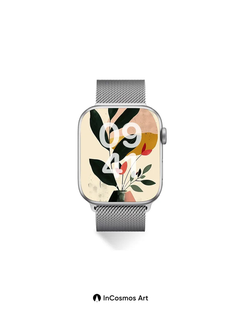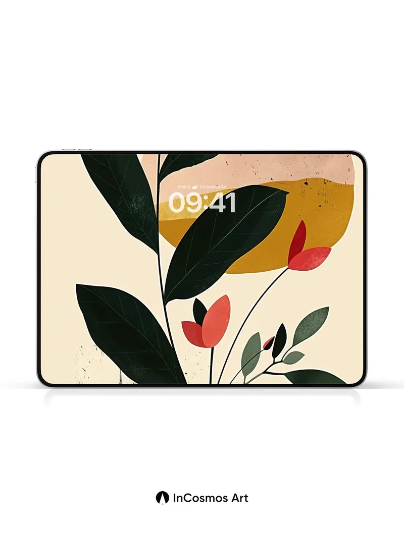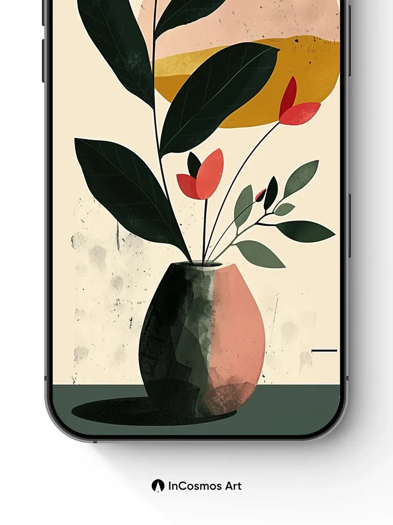 Calm Botanical Wallpaper with Earth-Toned Vessel
