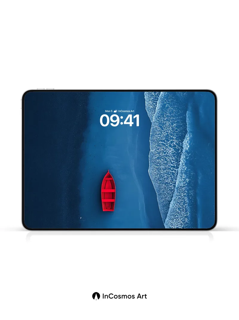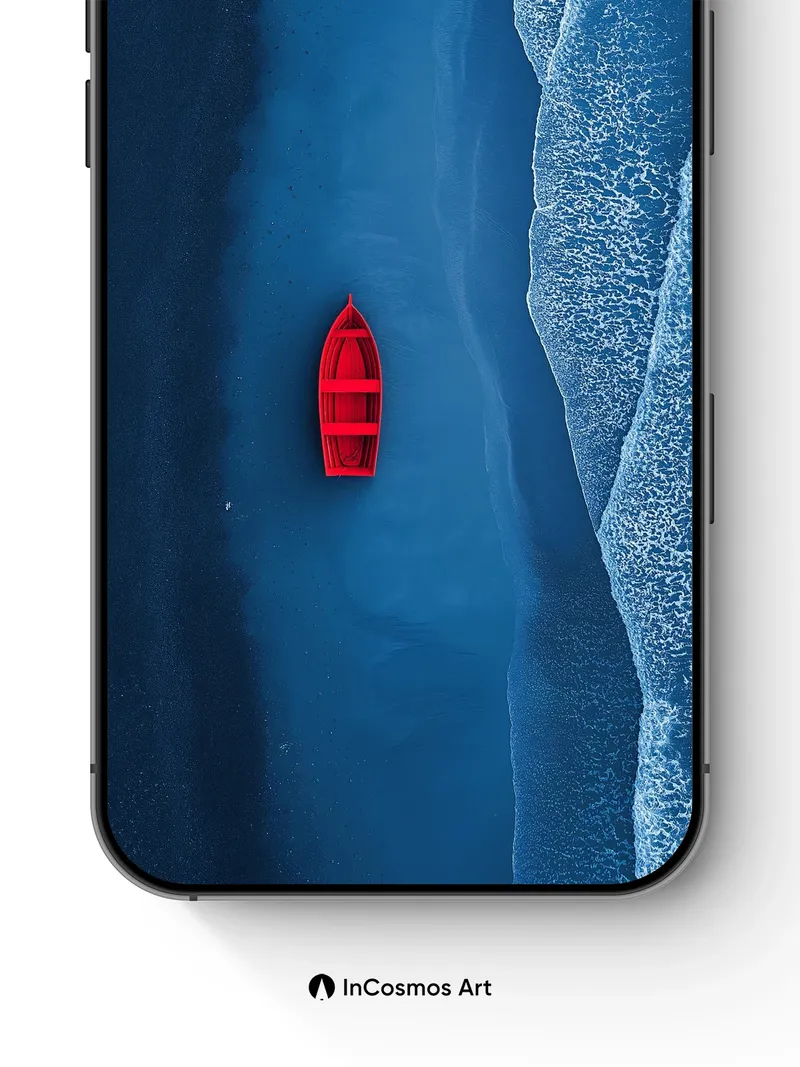 Calm Crimson Boat Wallpaper with Ocean Veil