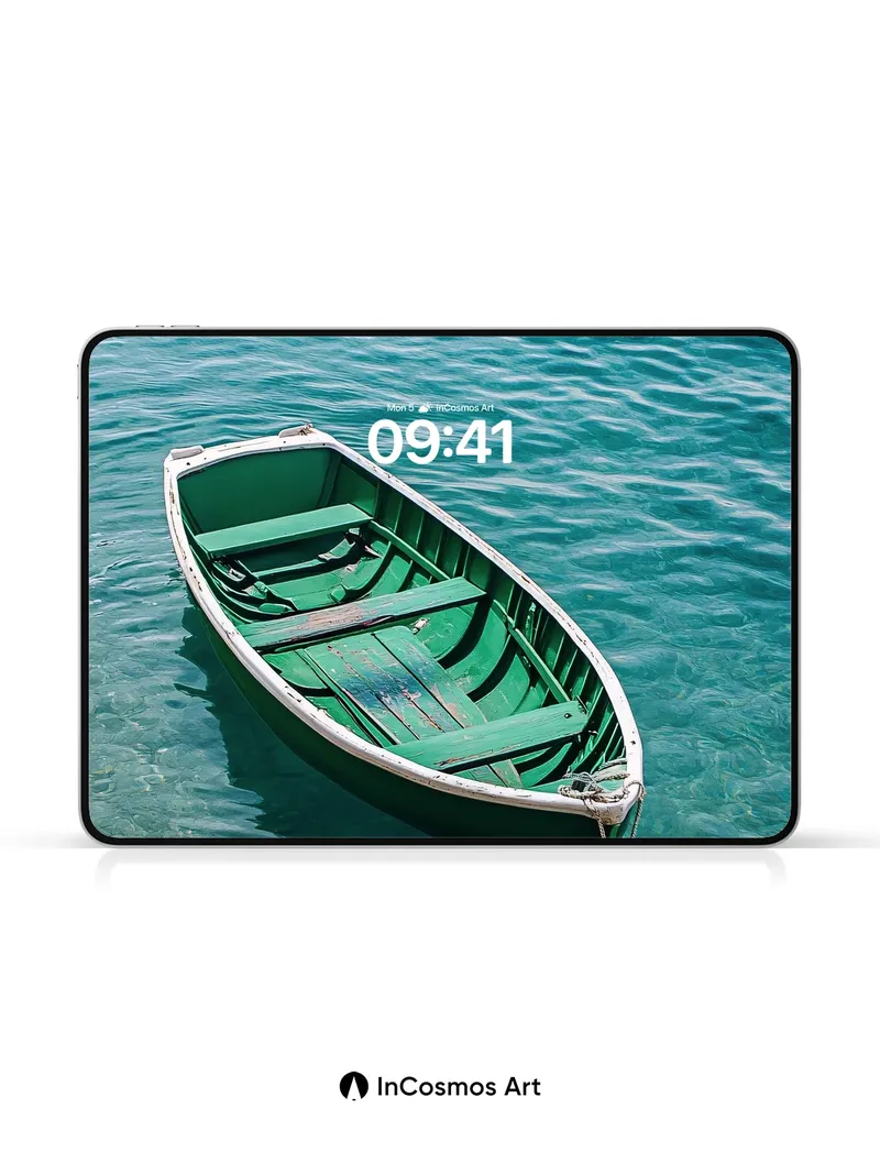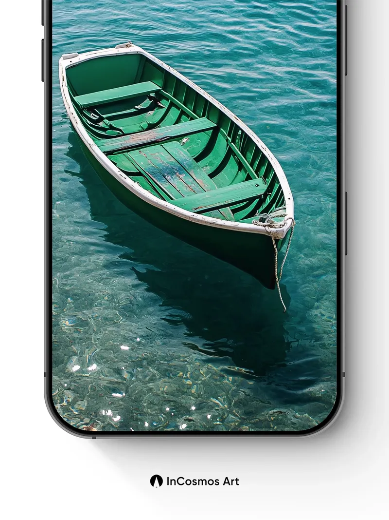 Calm Green Boat Wallpaper with Crystal Water