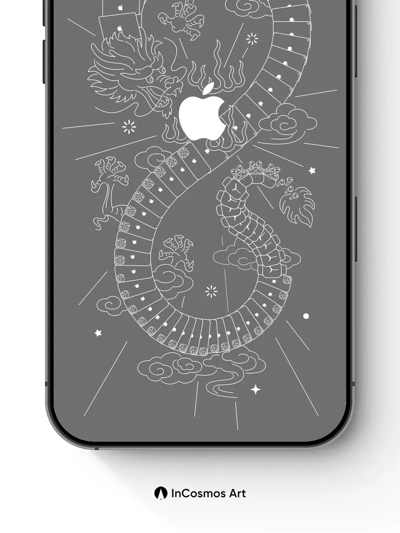 Did you know ancient Chinese astronomers mapped the stars along the dragon’s spine? This monochrome myth spirals through clouds and constellations, its scales etched in digital precision, each segment a silent device glowing with inner fire. The Apple logo rests at the heart of the coil—cool, crisp, and unyielding—where technology meets legend in a breathless dance of circuitry and cloud.