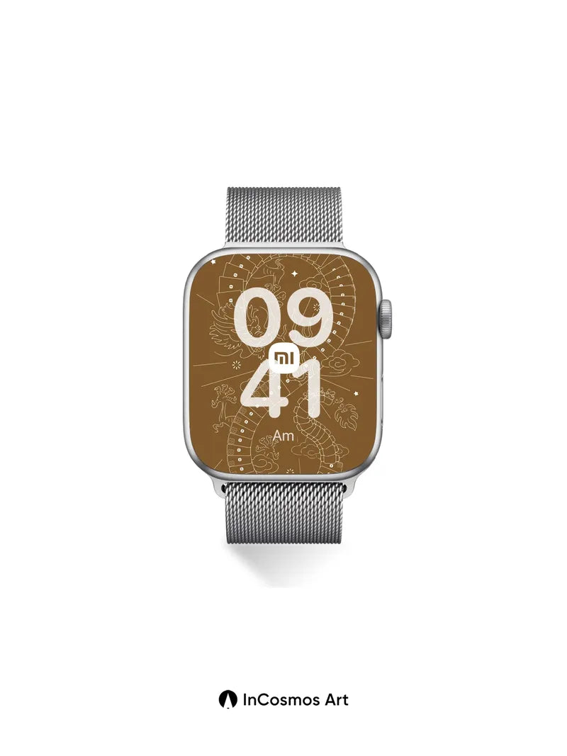 Debug product.metafields.custom.desc: Did you know ancient Chinese believed dragons could control the weather, breathing fire and summoning clouds? Here, a mythic dragon coils in luminous white lines across a deep amber void, its scales forming a spiral of digital cards—each one glowing faintly like a memory. The Xiaomi logo rests at its heart, not as an intrusion but as a sacred seal, where technology and legend breathe together.