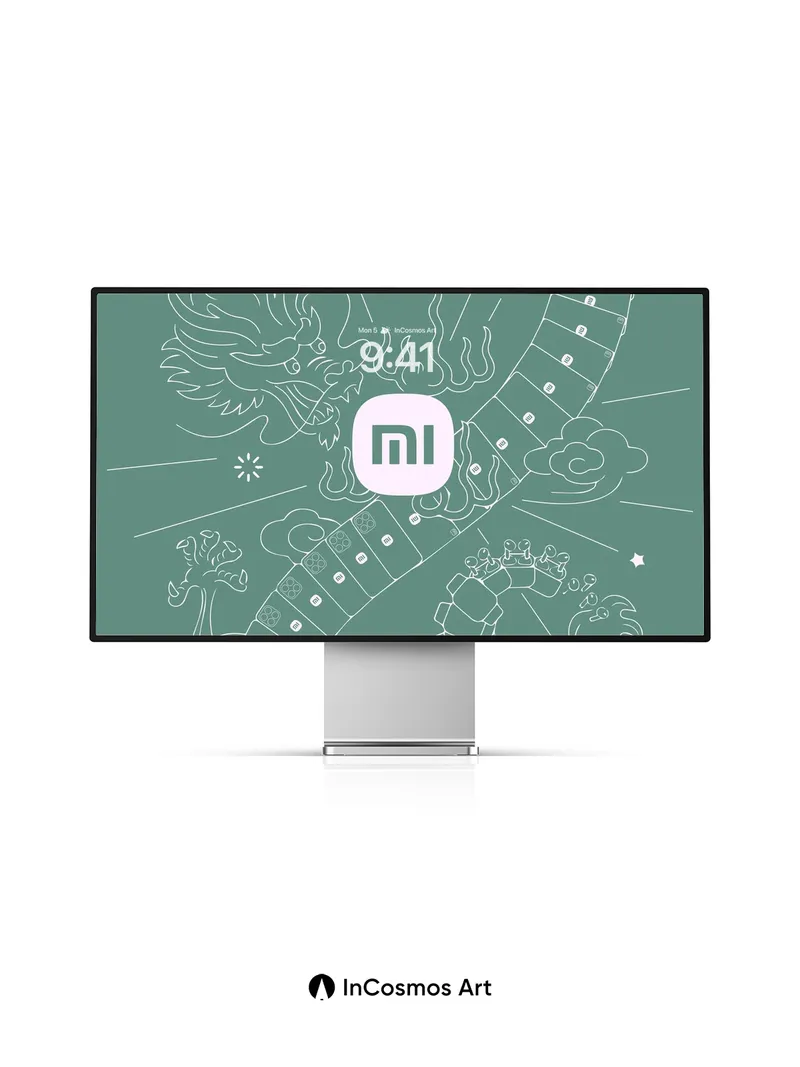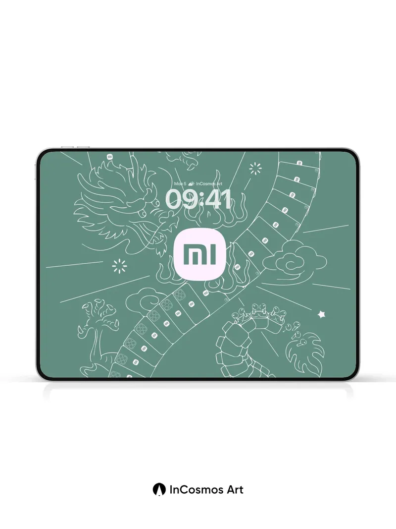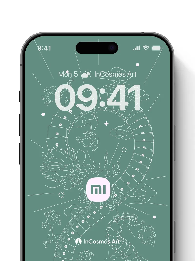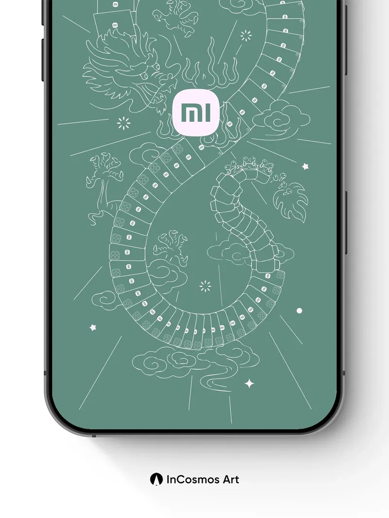 Did you know ancient Chinese artisans believed dragons could control the weather, breathing fire into storms and calm into stillness? Here, a serpentine dragon coils through a celestial arch of stylized cards, each etched with minimalist symbols—its breath forming clouds that drift like whispers across the emerald void. The Xiaomi logo rests at its heart, a quiet pulse in the mythic rhythm, where technology meets legend in silent reverence.