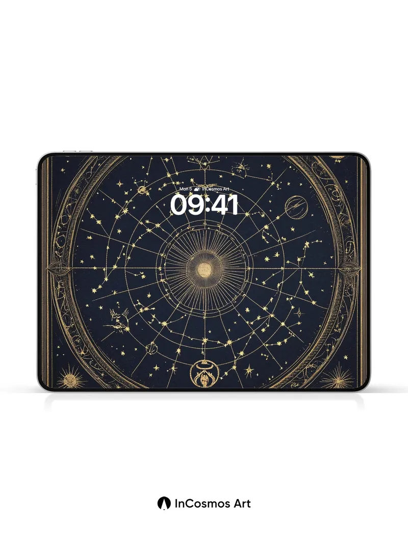 Celestial Vault Wallpaper with Golden Constellations