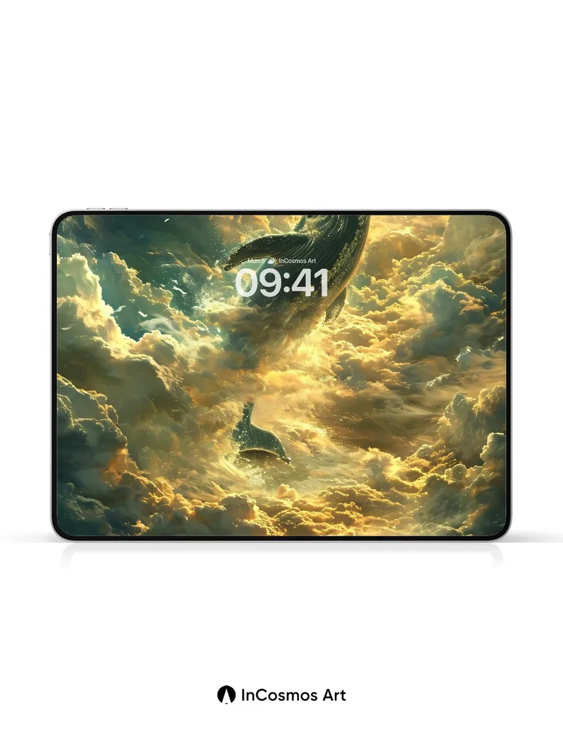 Celestial Whale Wallpaper with Cloud Currents