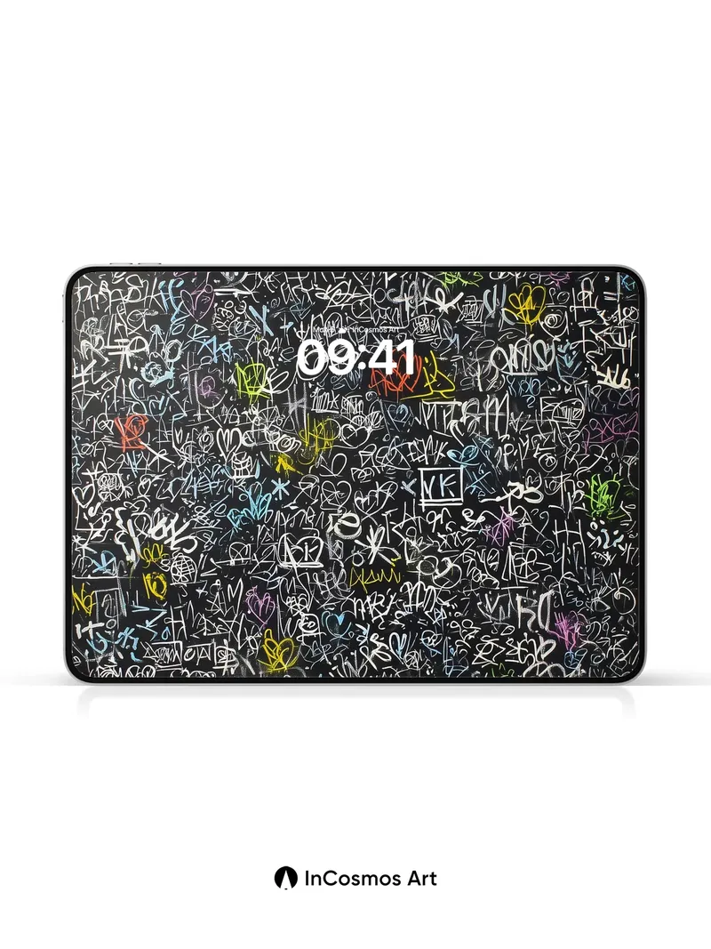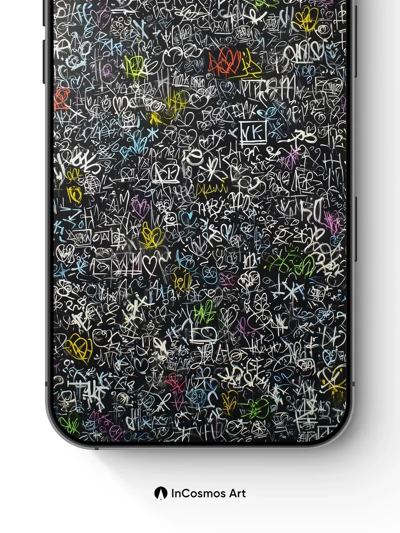 Chalkboard Chaos Wallpaper with Neon Hearts