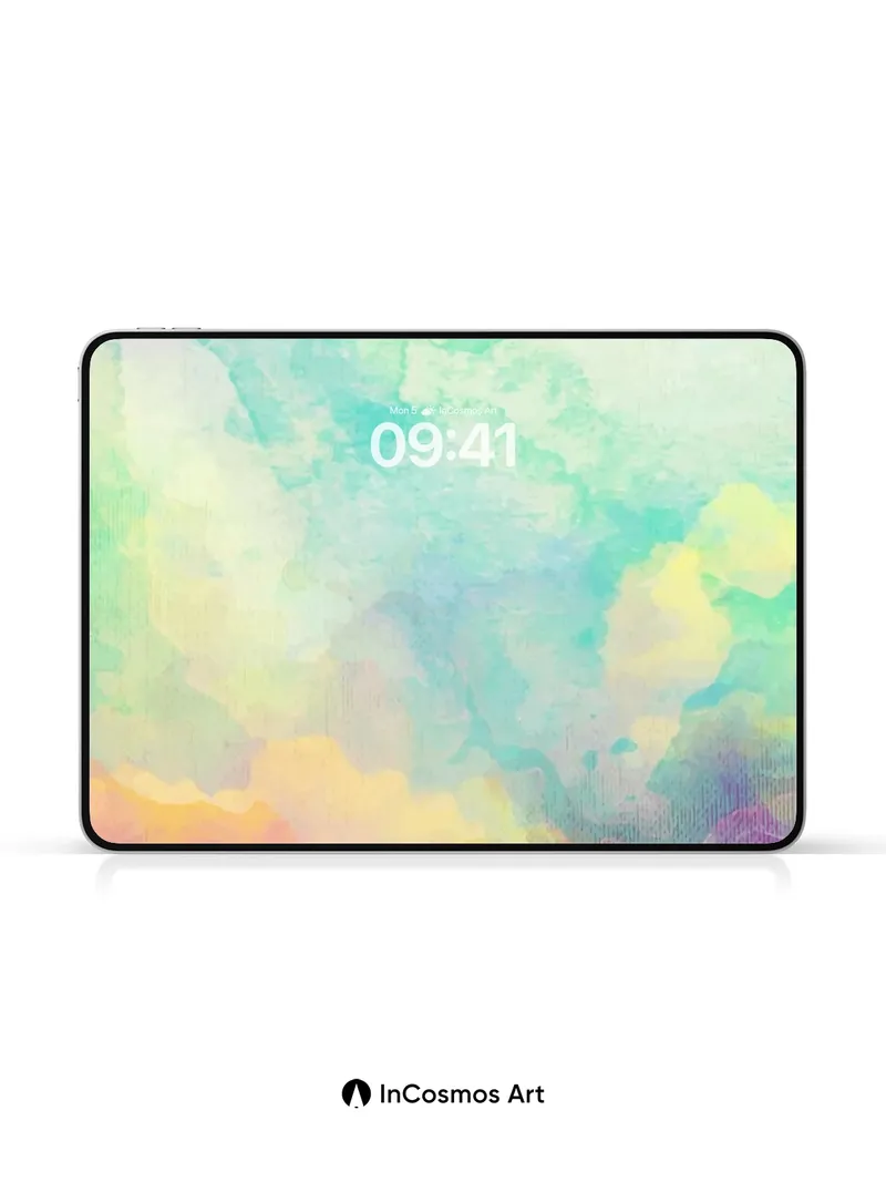 Did you know watercolor pigments can shift hue when exposed to humidity, creating living gradients? Here, color breathes through soft cloud forms like a sky in slow motion—teal mists curl into amber waves, while lavender shadows whisper across the horizon. You’re not just seeing a pattern; you’re stepping into a moment where light and pigment dance without rules.