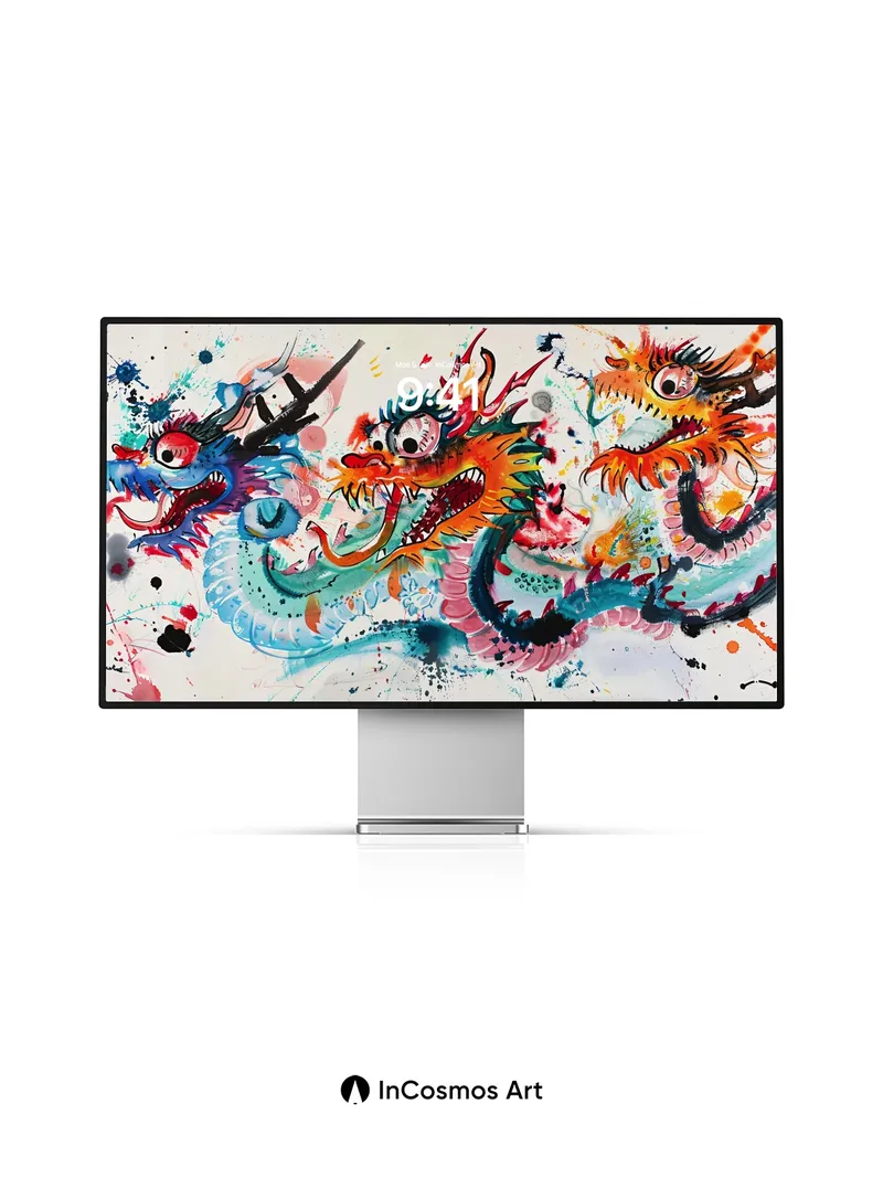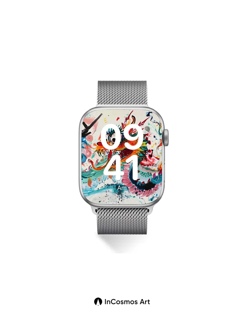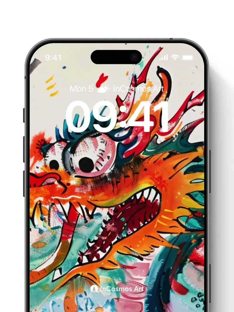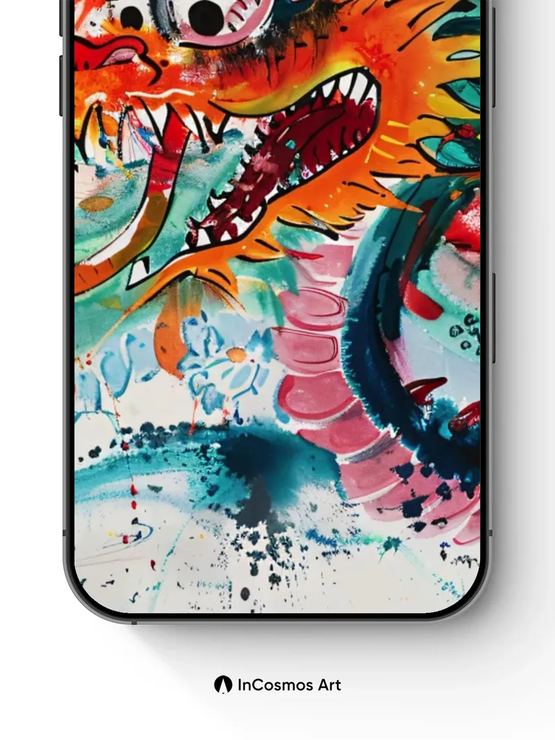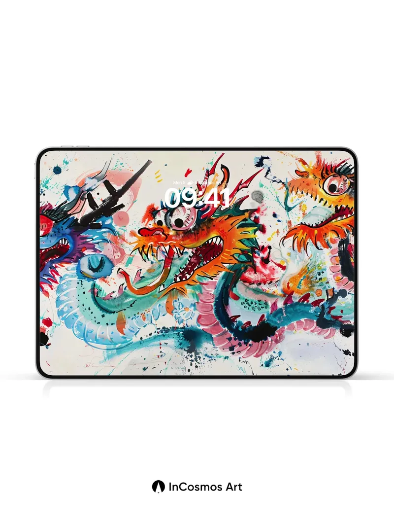 Chromatic Dragon Dance Wallpaper with Ink Splatter Magic