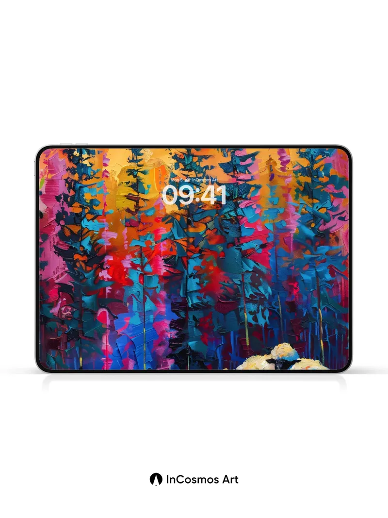 Chromatic Forest Wallpaper with Woolen Whispers