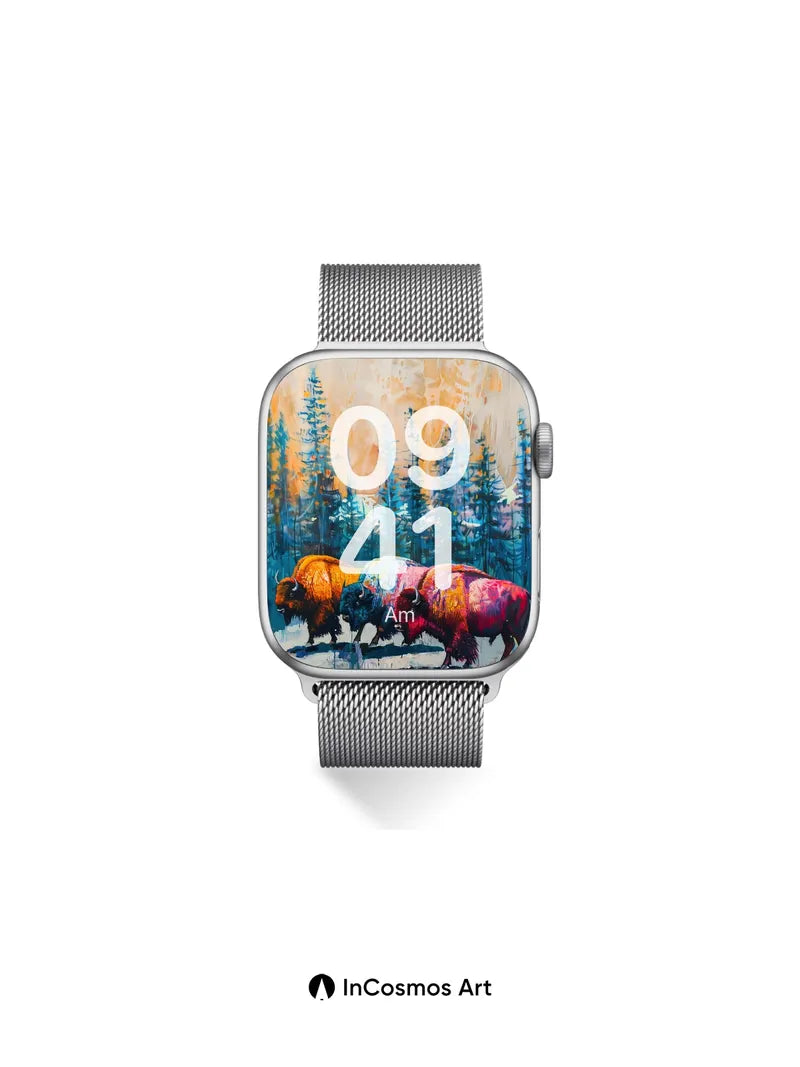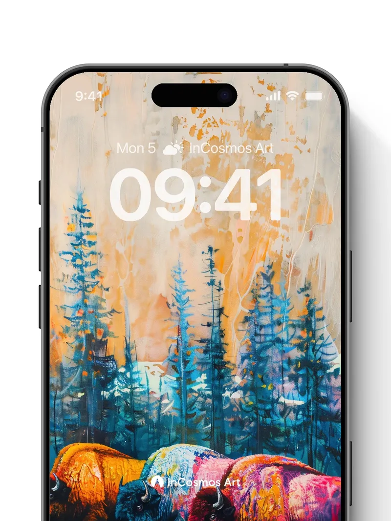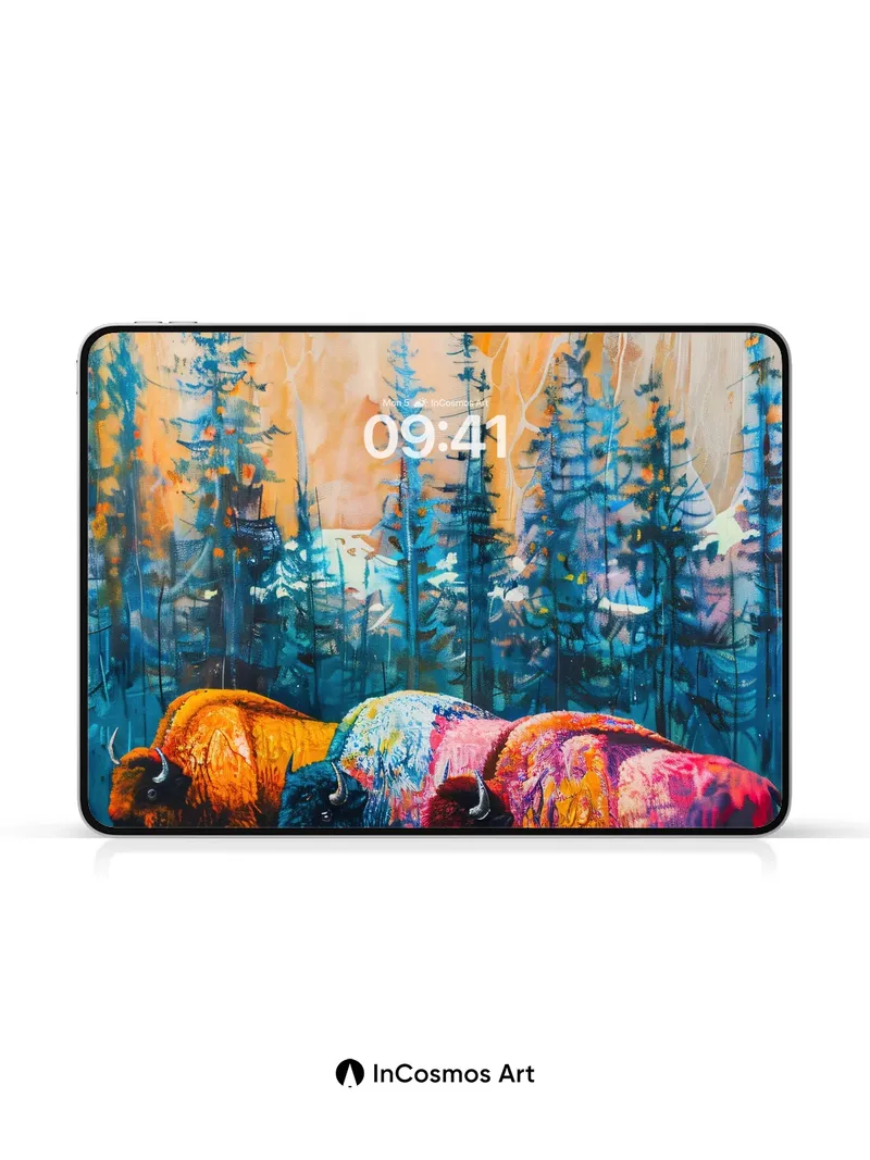 Chromatic Wilderness Wallpaper with Bison Reflections