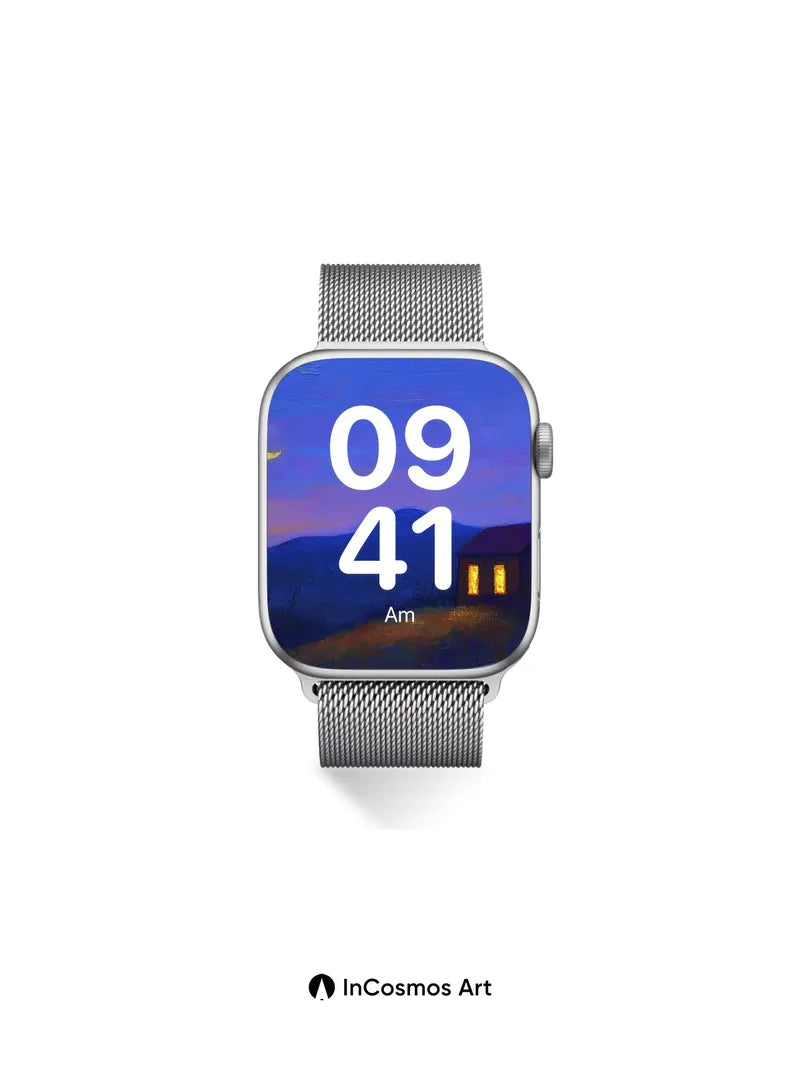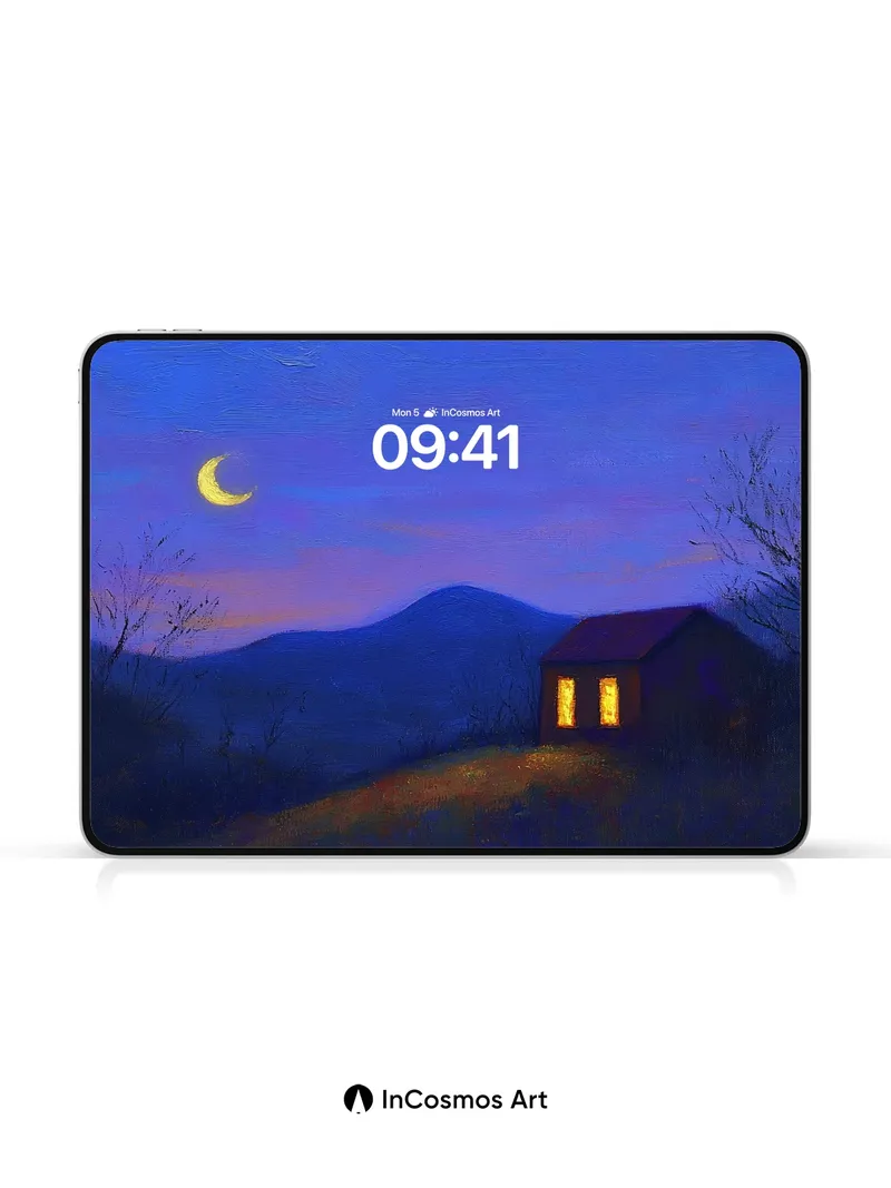 Cobalt Hush Wallpaper with Moonlit Hearth