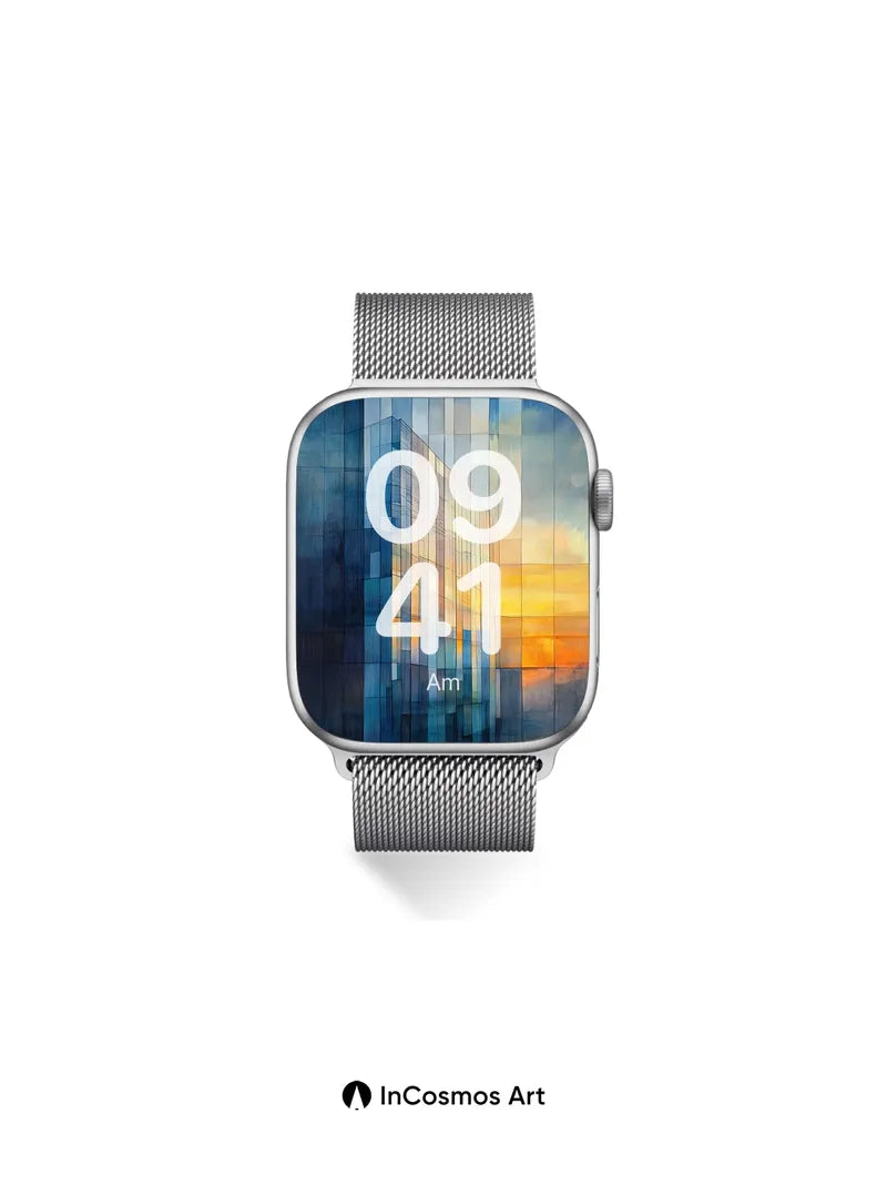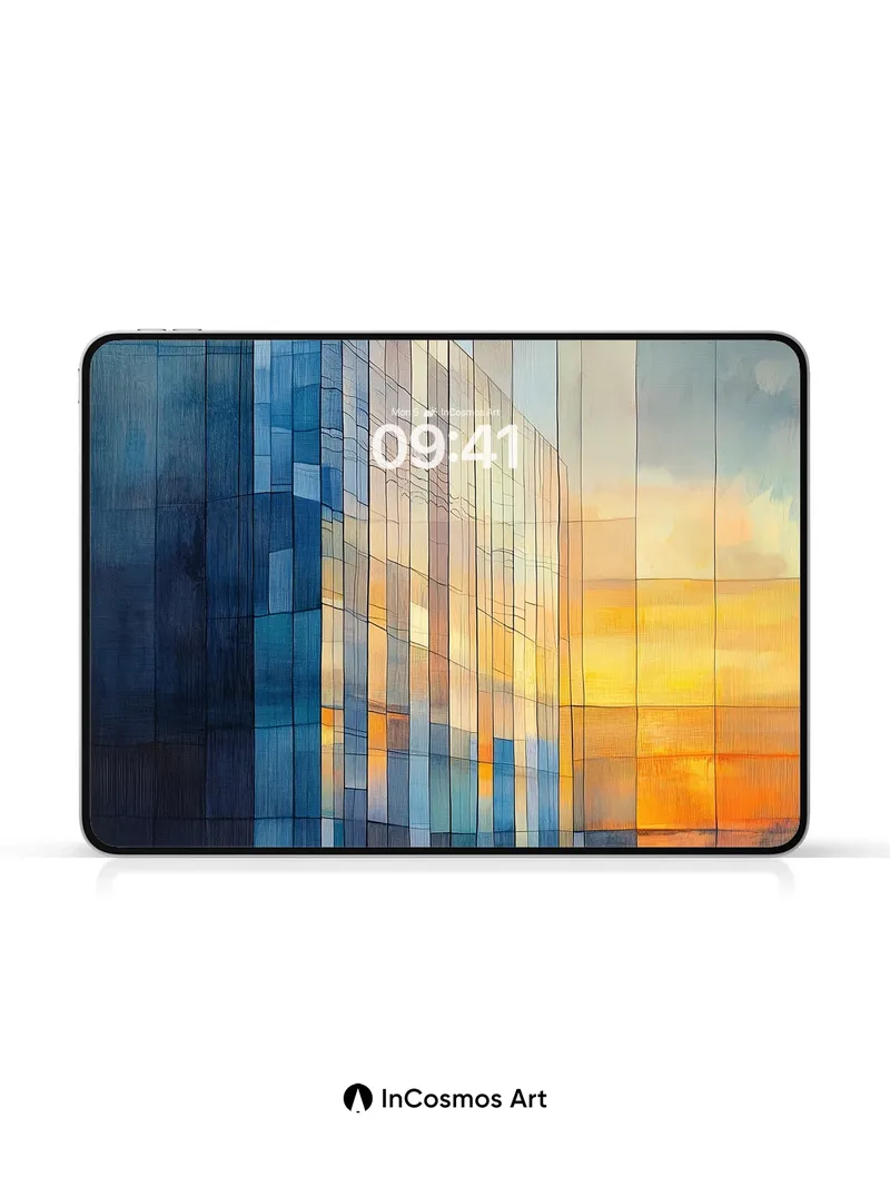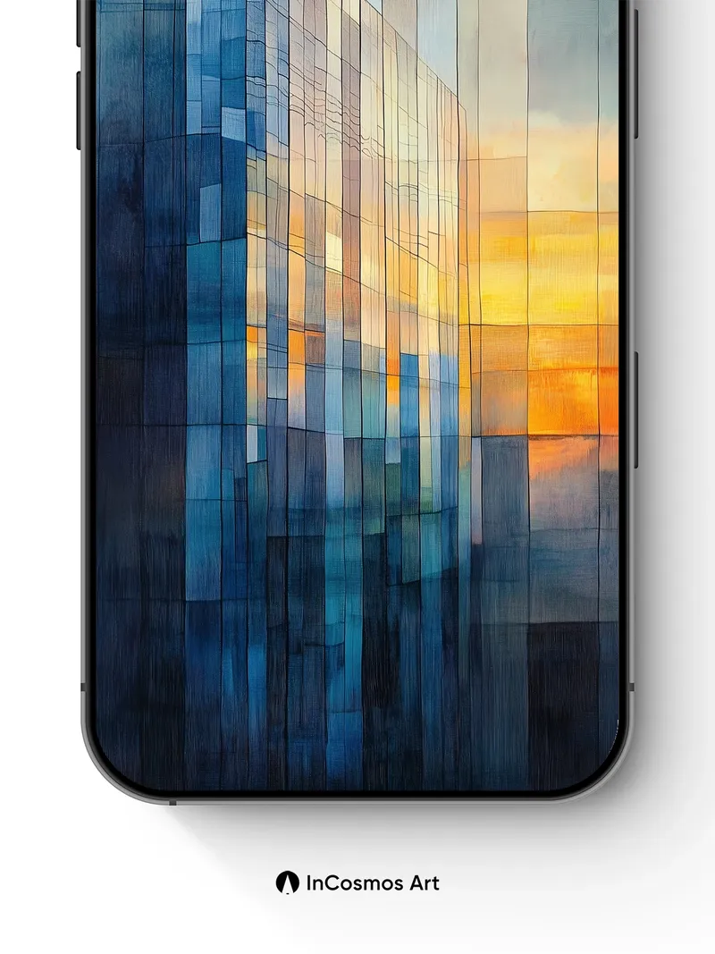 Cobalt Reflections Wallpaper with Sunset Geometry