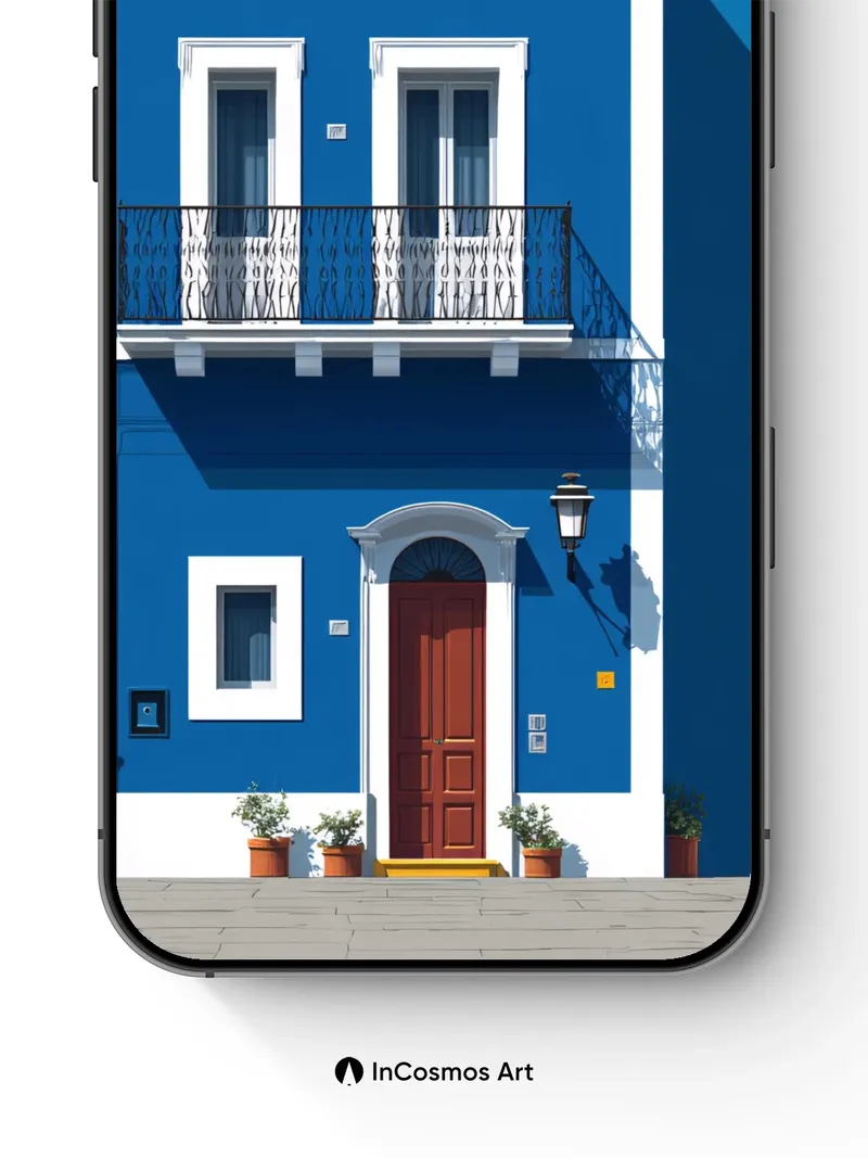 Cobalt Serenity Wallpaper with Balcony Whispers