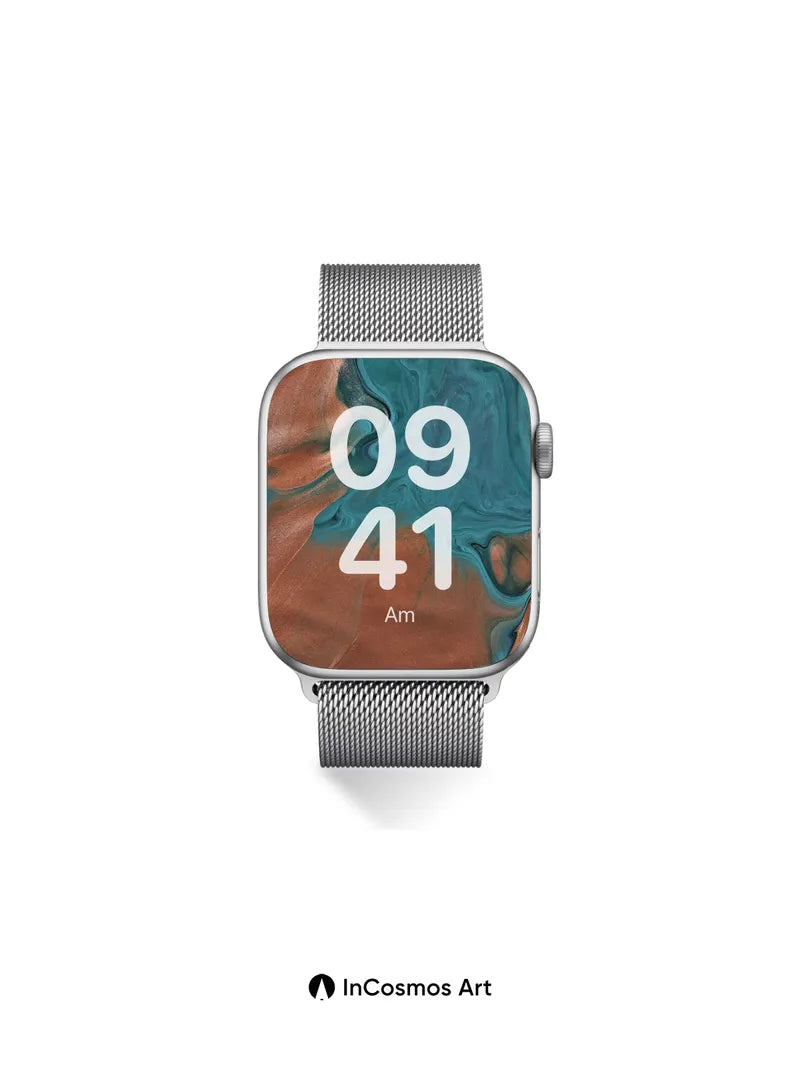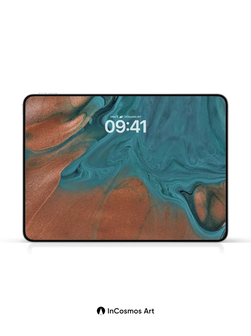 Debug page_description: Did you know ancient Egyptians used malachite pigment to create vivid blues and greens in their art? Here, the mineral’s spirit flows like liquid glass across a rusted copper canvas, where color breathes through time-worn texture. The contrast between molten earth and deep sea currents evokes both geological memory and celestial motion—each curve a whisper of erosion or tide. Share this with your best friend. Send this to your love and swap a matching set. What if your walls could remember the ocean?