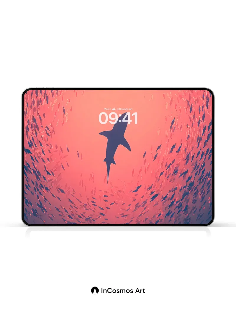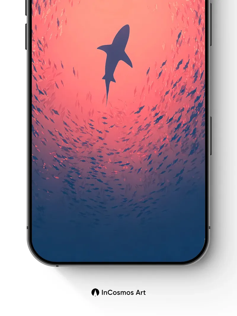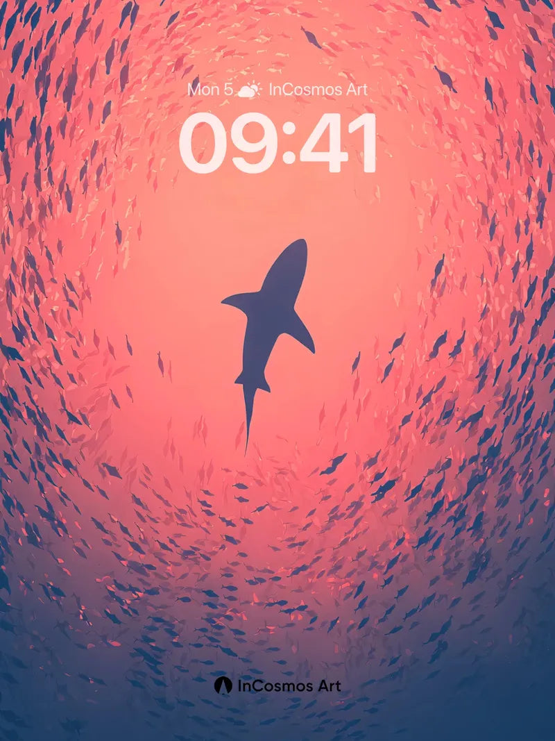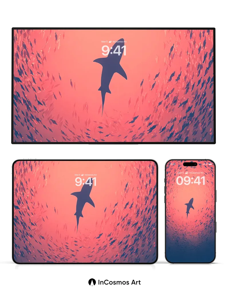 A lone shark glides through a coral-hued tunnel of fish, the light diffusing like silk in water. Did you know that some sharks can detect a single drop of blood in a million drops of water? The gradient fades from warm pink to deep blue, creating a sense of infinite depth. Share this with your best friend. Send this to your love and swap a matching set. What secrets lie beneath the surface of this serene ocean? The full resolution of this artwork/wallpaper is 4320 × 7708, with a file size of 2.79 MB MB. Image in App code: aj5649 1080:1927 Applicable to mobile phones. This product only contains one wallpaper, other wallpapers in the multi-device effect preview need to be purchased separately. Download Information The download link will be on the “Thank You” page once payment is completed. Most wallpaper themes can be instantly downloaded once payment is processed. Few wallpaper backgrounds will generally be processed and sent within 48 hours to your email inbox as our team must confirm that patterns, quality, and links are in proper working order before shipping.