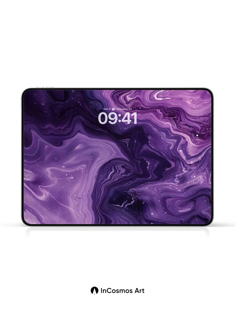 Debug page_description: Did you know amethyst was once believed to prevent intoxication, a stone of clarity and calm? Here, deep violet currents pulse like liquid cosmos, swirling with silver specks that shimmer as if caught in the breath of a galaxy. The texture feels like cooled lava meeting celestial silk—each fold a hidden constellation, every curve a whispered secret from the edge of space. Share this with your best friend. Send this to your love and swap a matching set. What if your walls could hold entire universes?