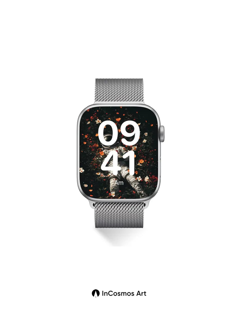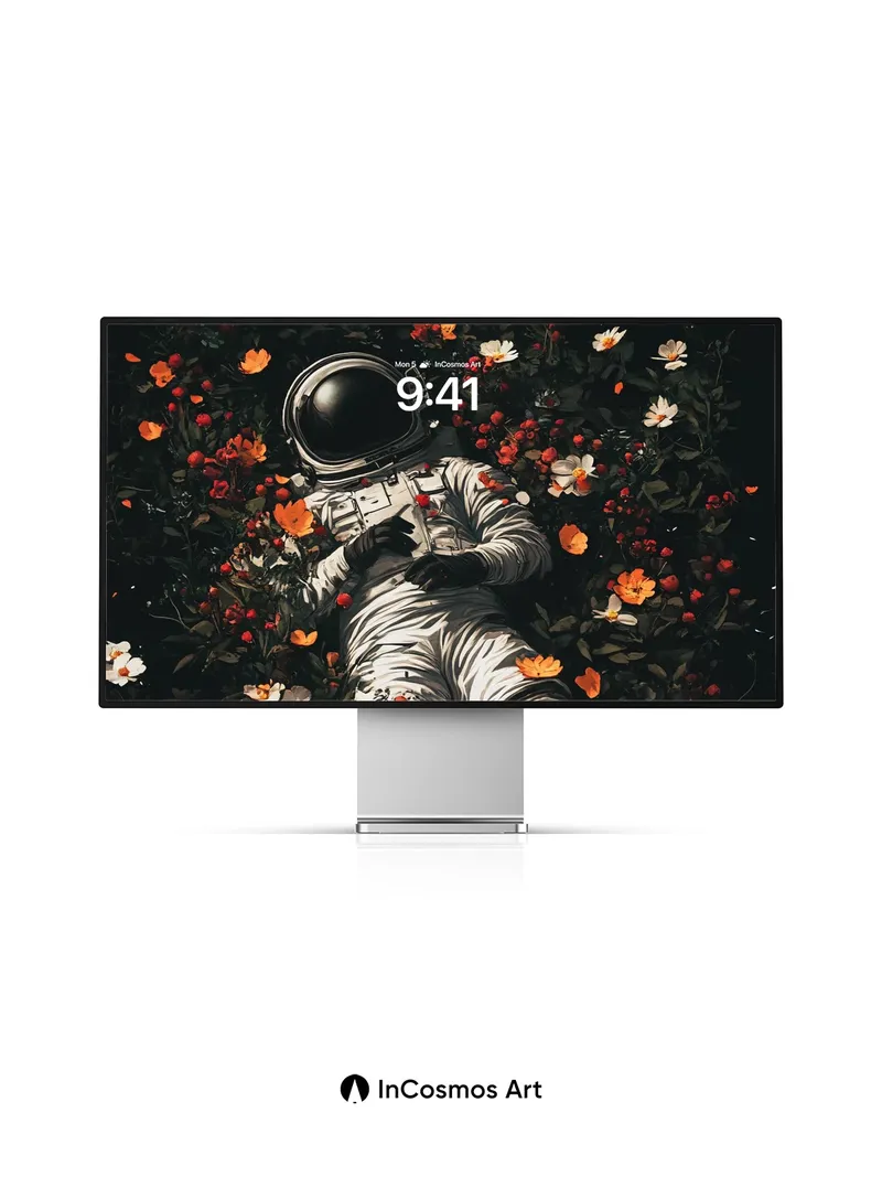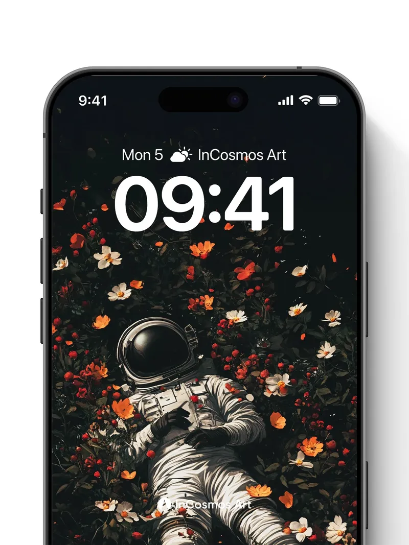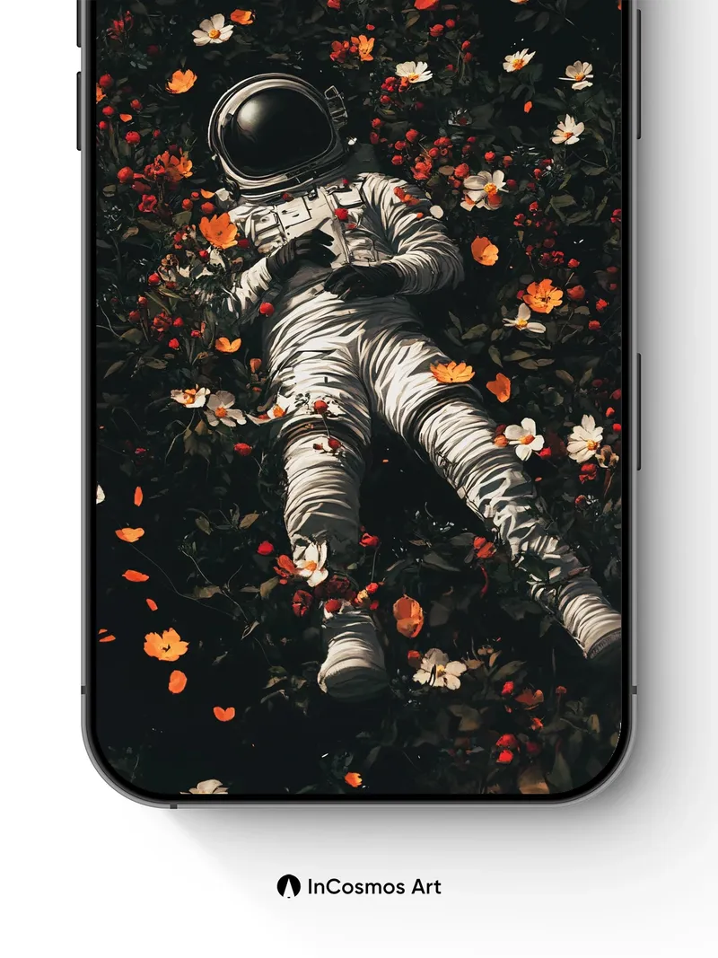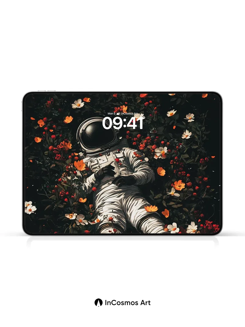 Cosmic Bloom Wallpaper with Astronaut Reclining