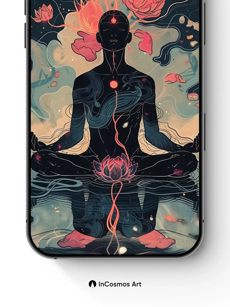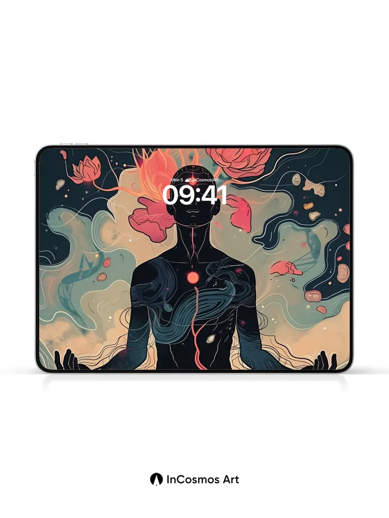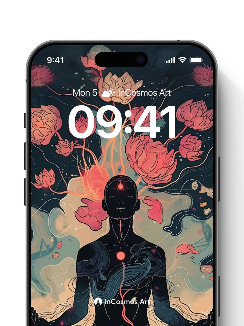 Cosmic Bloom Wallpaper with Floating Lotus Energy