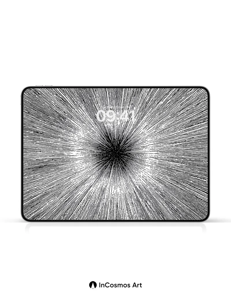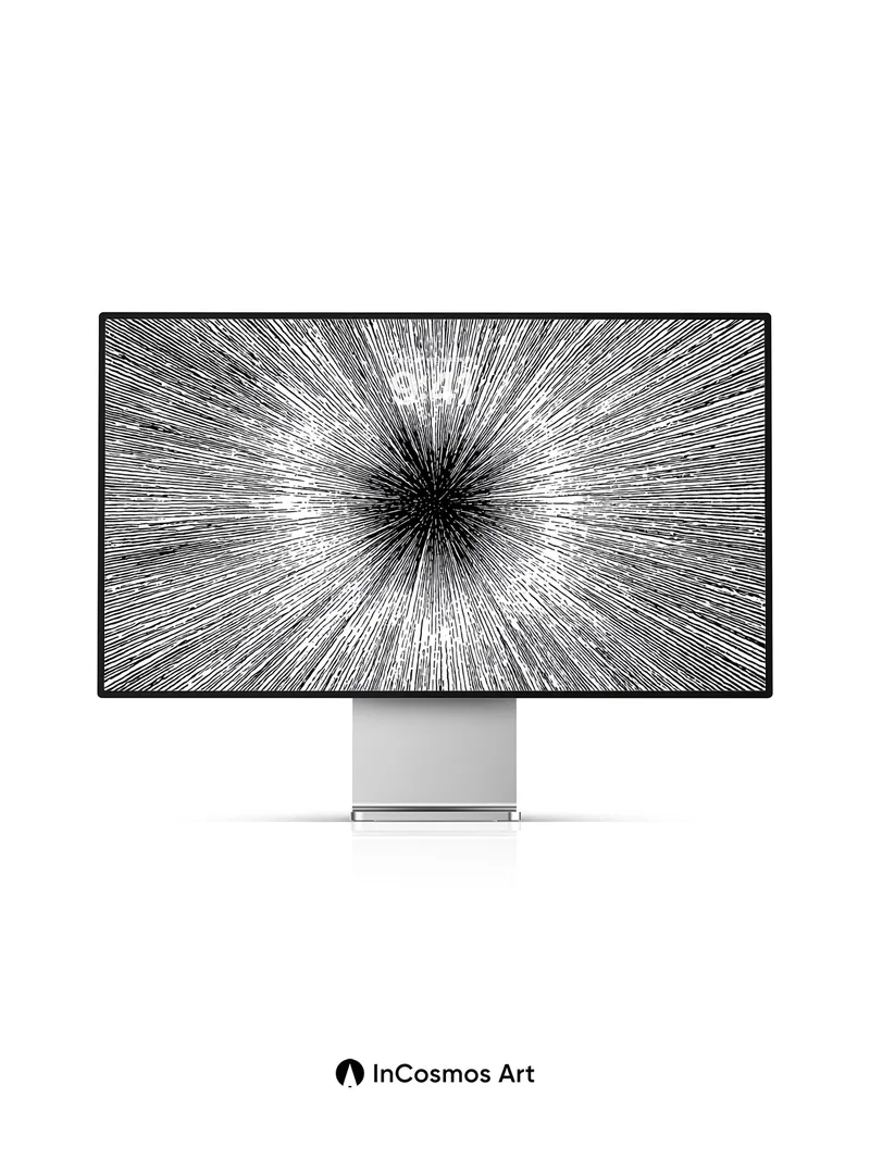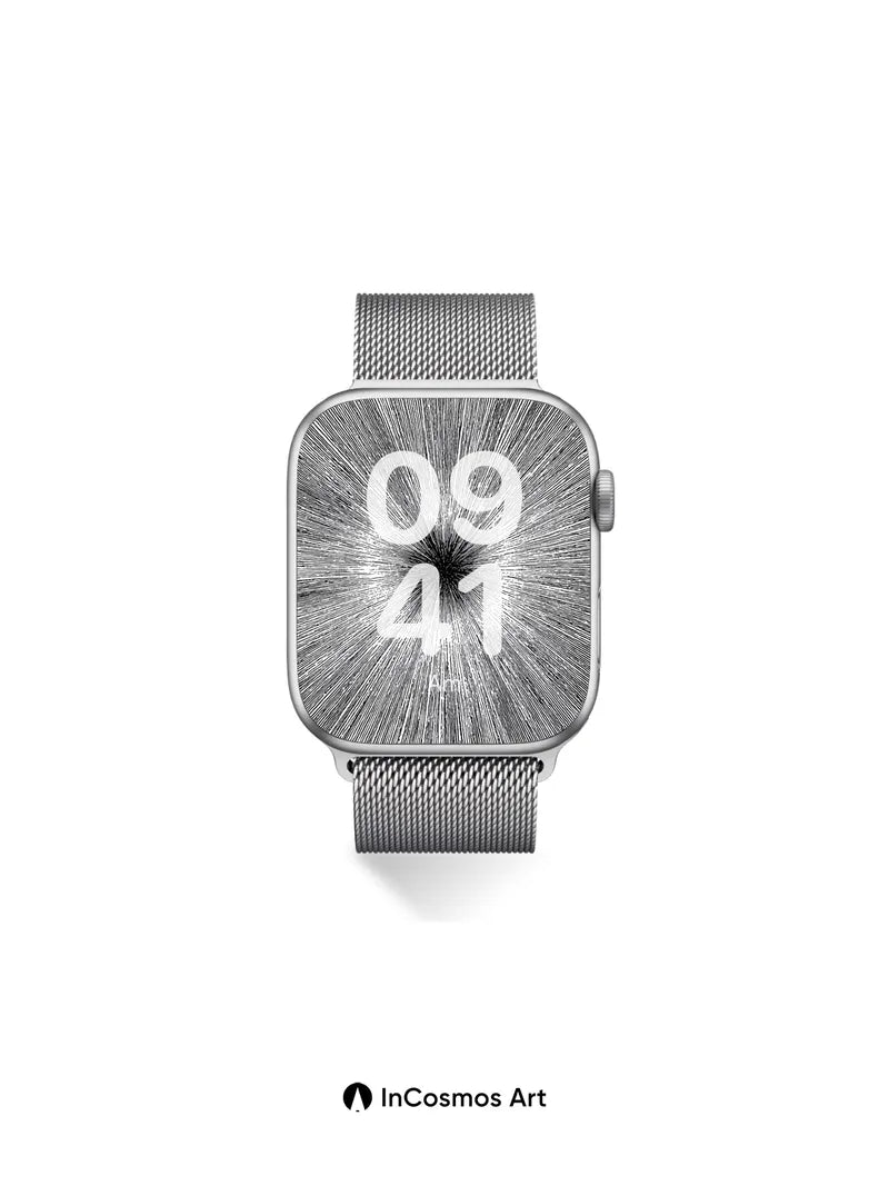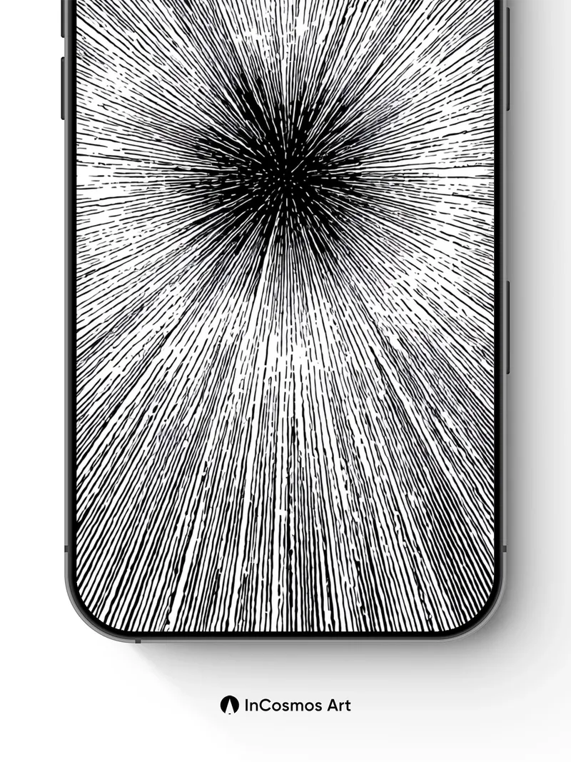 Debug product.metafields.custom.desc: Did you know that light travels at 299,792 kilometers per second through space, creating the illusion of motion when seen from a moving frame? This image captures that very sensation—thousands of fine silver threads stretching outward like starlight on a black canvas, each one a whisper of velocity. You feel pulled into the center, where darkness hums with potential, and the edges glow with quiet urgency.