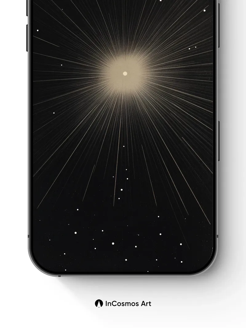 Debug product.metafields.custom.desc: Did you know that the light from distant stars can travel for millions of years before reaching your eyes? This image captures a luminous core pulsing outward, as if time itself is unraveling into streaks of silver and gold across an infinite void. The starlight doesn’t just shine—it breathes, stretching into delicate filaments that shimmer like frozen comets against the silent dark.