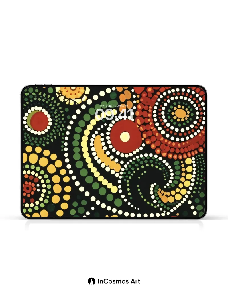 Cosmic Dot Symphony Wallpaper with Aboriginal Echoes