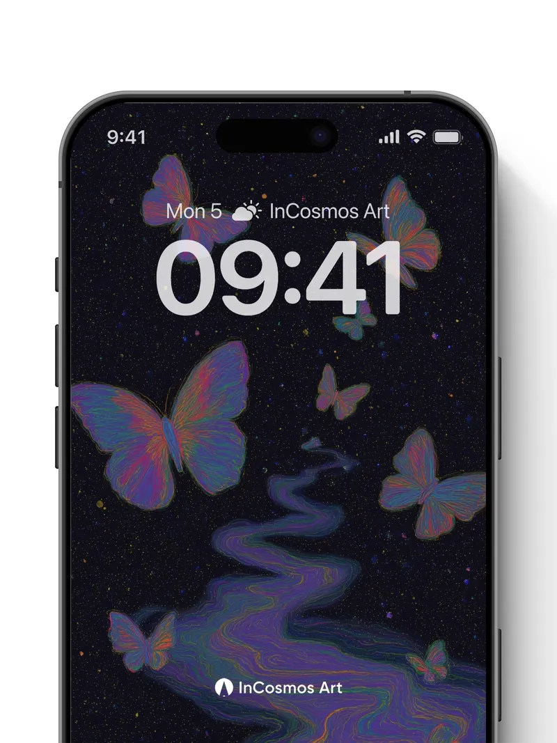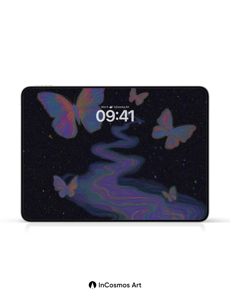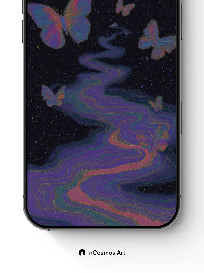 Cosmic Drift Wallpaper with Iridescent Wings