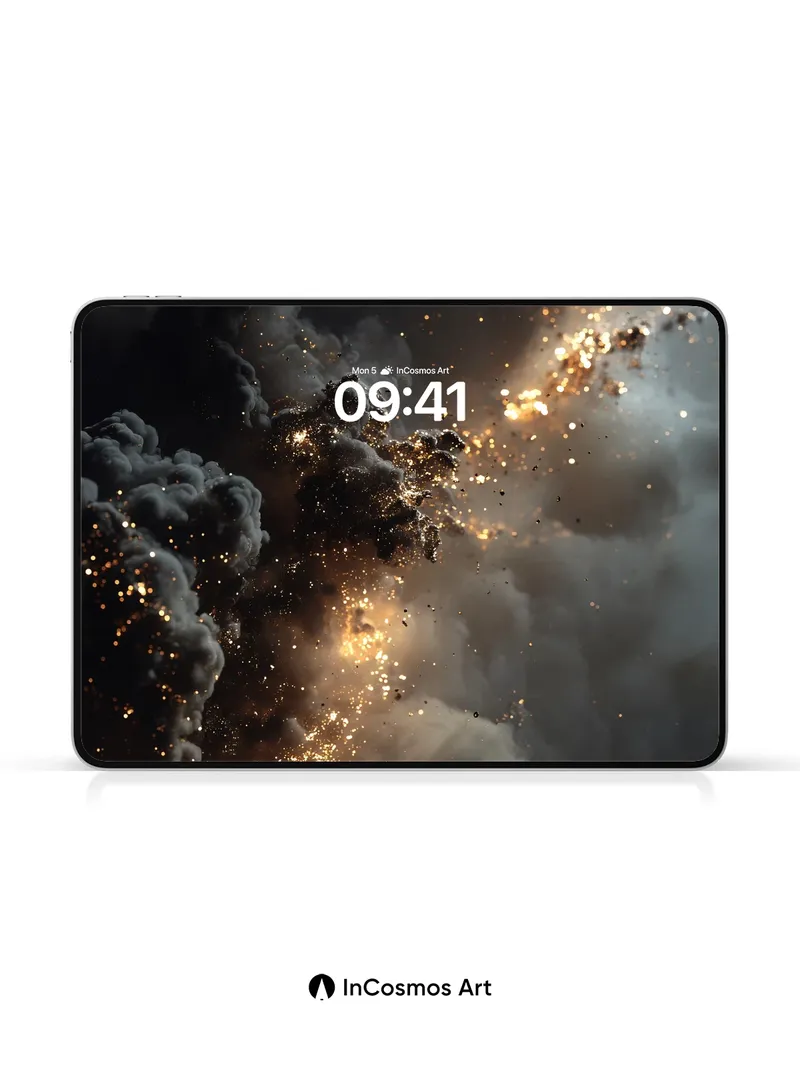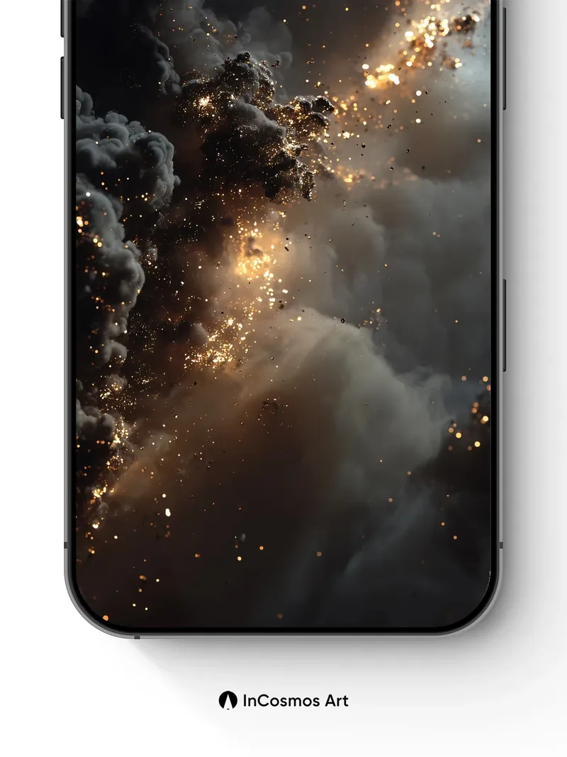 Cosmic Ember Wallpaper with Floating Gold Dust