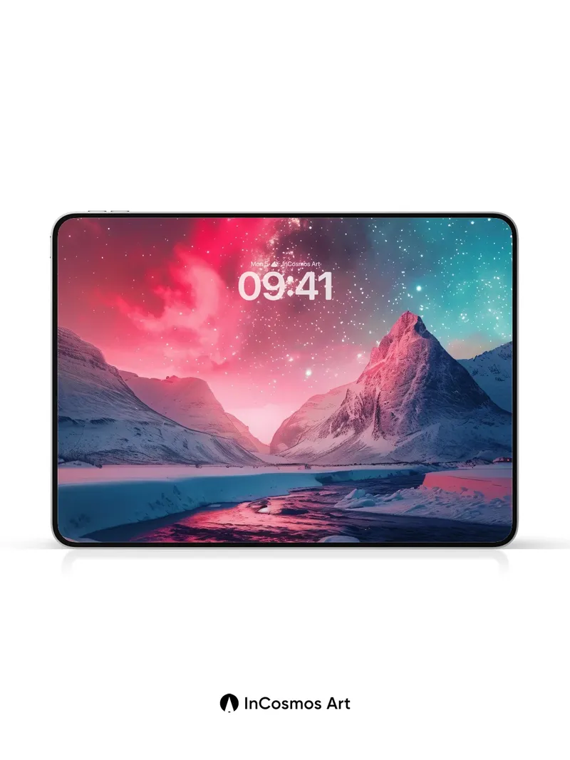 Debug product.metafields.custom.desc: Did you know the aurora borealis is caused by solar particles colliding with Earth’s atmosphere? Here, crimson light crawls over snow-draped mountains like a living veil, while the river below mirrors the celestial storm in liquid obsidian. The sky breathes in hues of nebula and twilight, casting an otherworldly glow that transforms ice into a cathedral of frozen dreams.