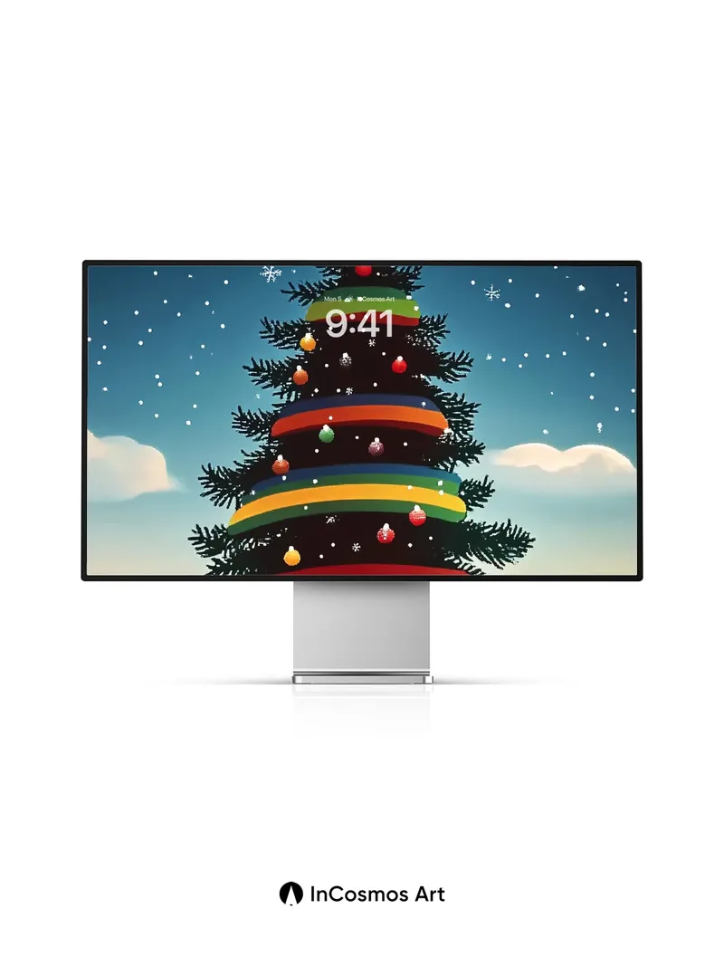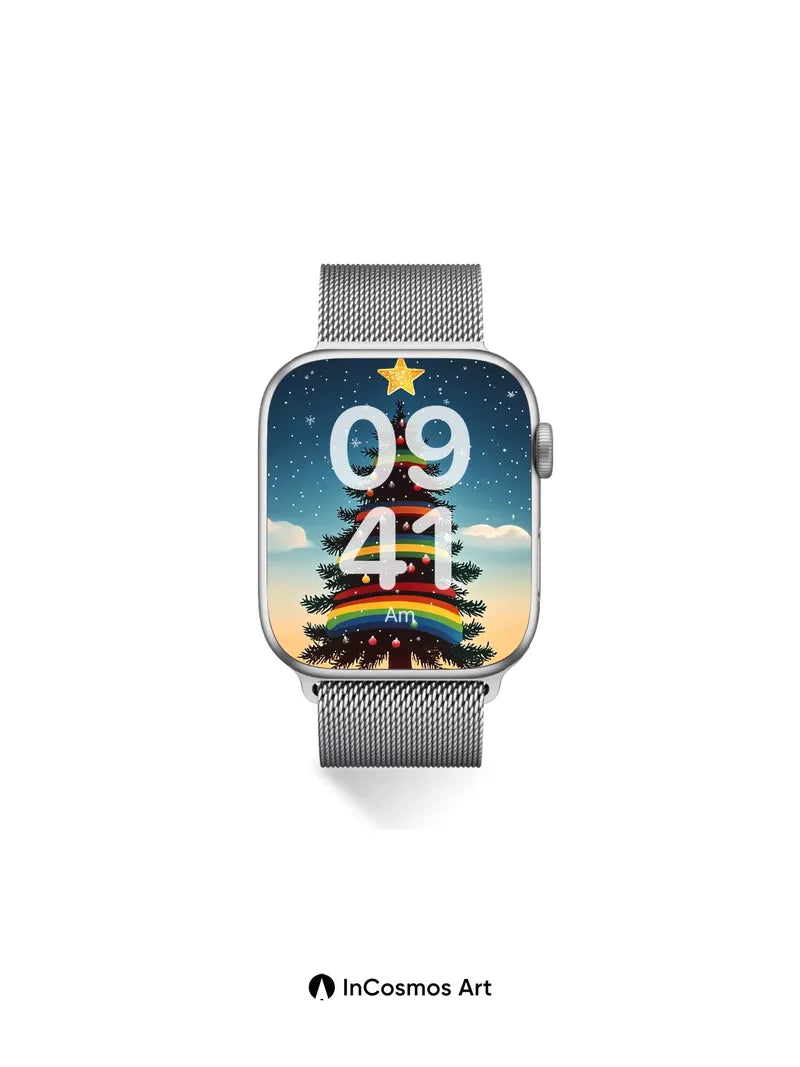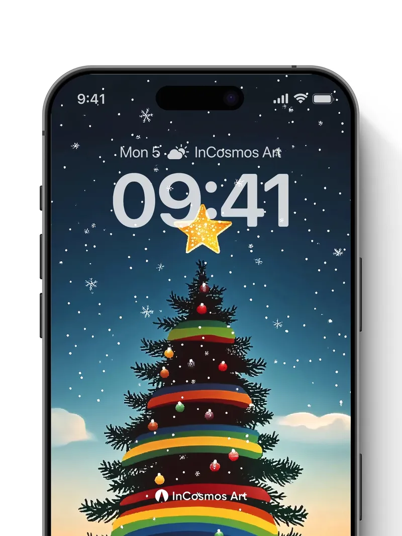 Debug product.metafields.custom.desc: Did you know the first electric Christmas tree was lit in 1895, sparking a holiday revolution? This festive pine glows with rainbow ribbons that ripple like liquid light, crowned by a golden star pulsing against a velvet night scattered with snowflake constellations. The air hums with quiet magic as frost-kissed branches cradle glowing baubles, each one a tiny universe reflecting the twilight’s soft gradient from amber to indigo.