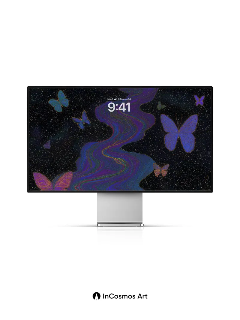 Debug product.metafields.custom.desc: Did you know that butterflies can detect ultraviolet light, making them navigate by celestial patterns? Here, they drift through a galaxy-streaked void where color breathes like liquid auroras—each wingbeat stirring the nebula’s slow pulse. The river of iridescent flow isn’t water, but memory made visible, winding through star-dusted silence as if time itself were folding into dream.