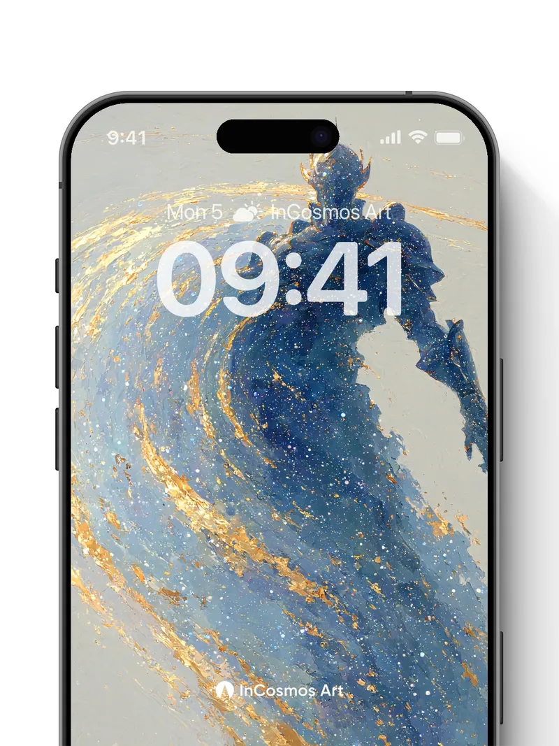 Debug product.metafields.custom.desc: Did you know ancient sailors once believed waves carried the breath of gods? Here, a warrior forged from starlight rides a tide of liquid sapphire and gold, where every curve hums with celestial energy. The armor glows not with metal, but with trapped galaxies—its edges flicker like dying supernovas, while the water swirls in slow motion, as if time itself is being rewound by myth.