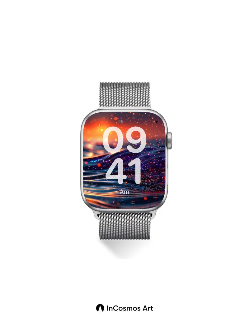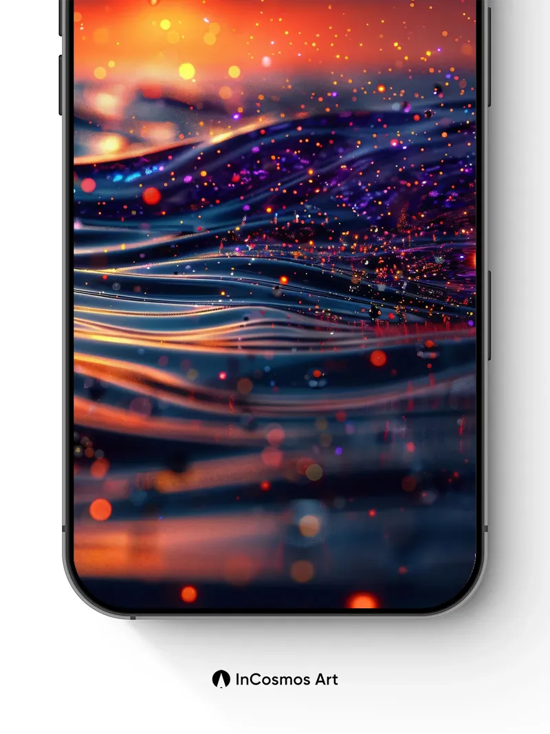 Debug product.metafields.custom.desc: Did you know that the color orange in ancient cultures symbolized spiritual transformation? Here, it bleeds into twilight as liquid light dances across undulating waves, each crest catching a constellation of glowing particles. The surface breathes like a living membrane, shimmering with electric veins and scattered sparks that drift like stardust over a sea of molten night.