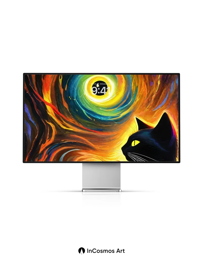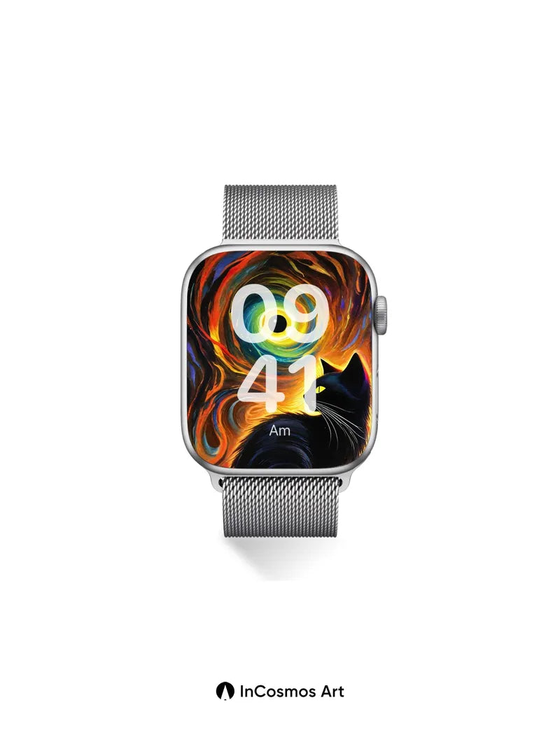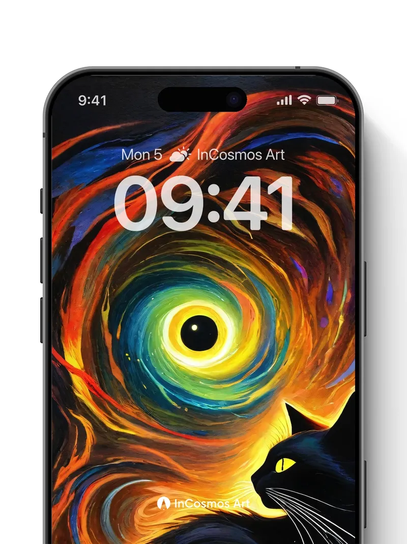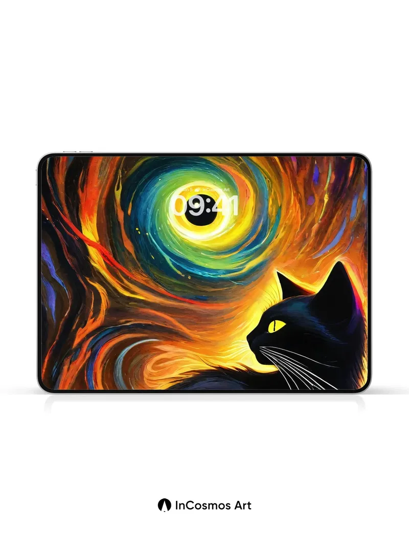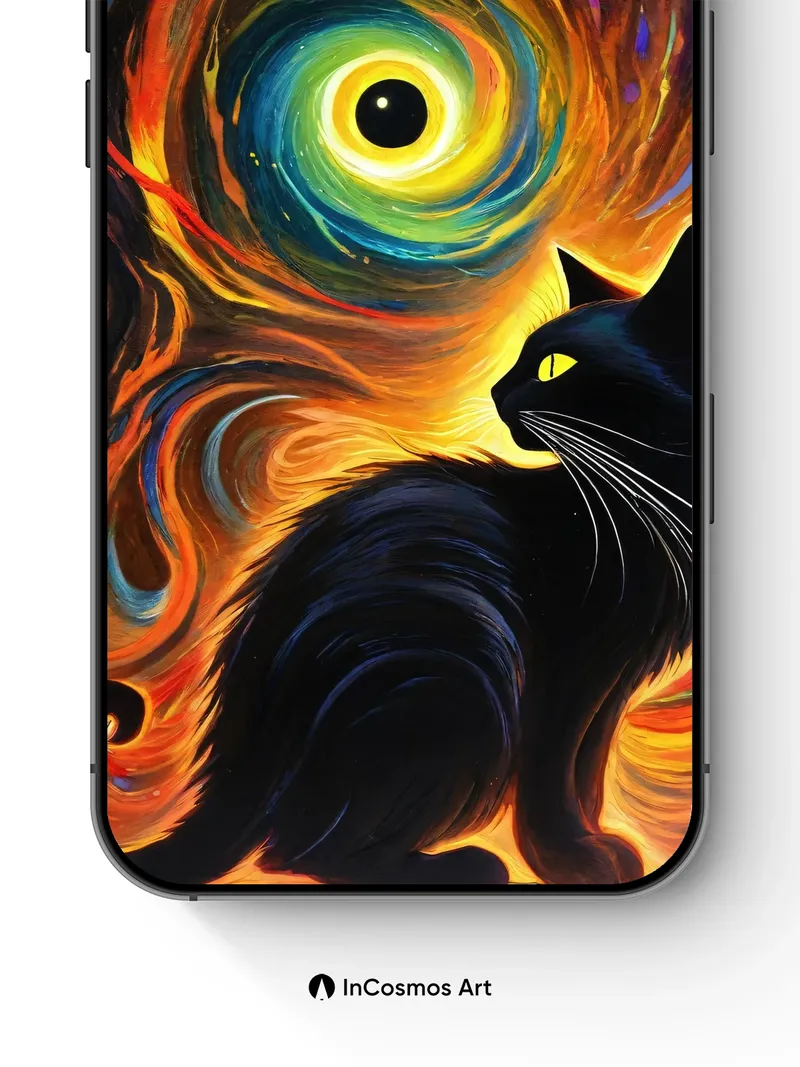 Cosmic Whirlpool Wallpaper with Midnight Feline