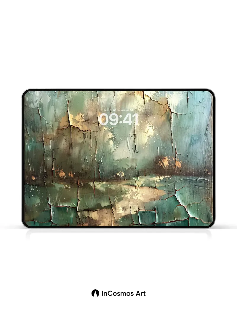 Cracked Verdigris Wallpaper with Ancient Light