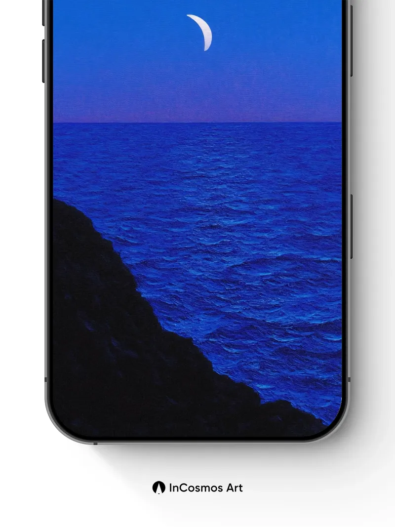 Crescent Moon Over Ocean Wallpaper with Midnight Hush